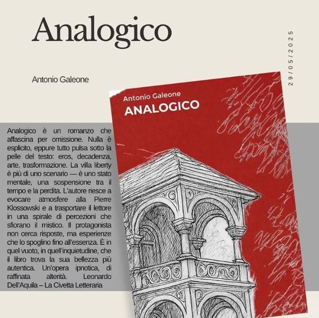 Protagonista della serata sarà Antonio Galeone, autore del libro “Analogico”, edito da Anothercoffeestories, che incontrerà il pubblico per un confronto aperto e autentico sul suo percorso di scrittura, le tematiche affrontate nel volume e il valore della narrazione come strumento di memoria e identità.