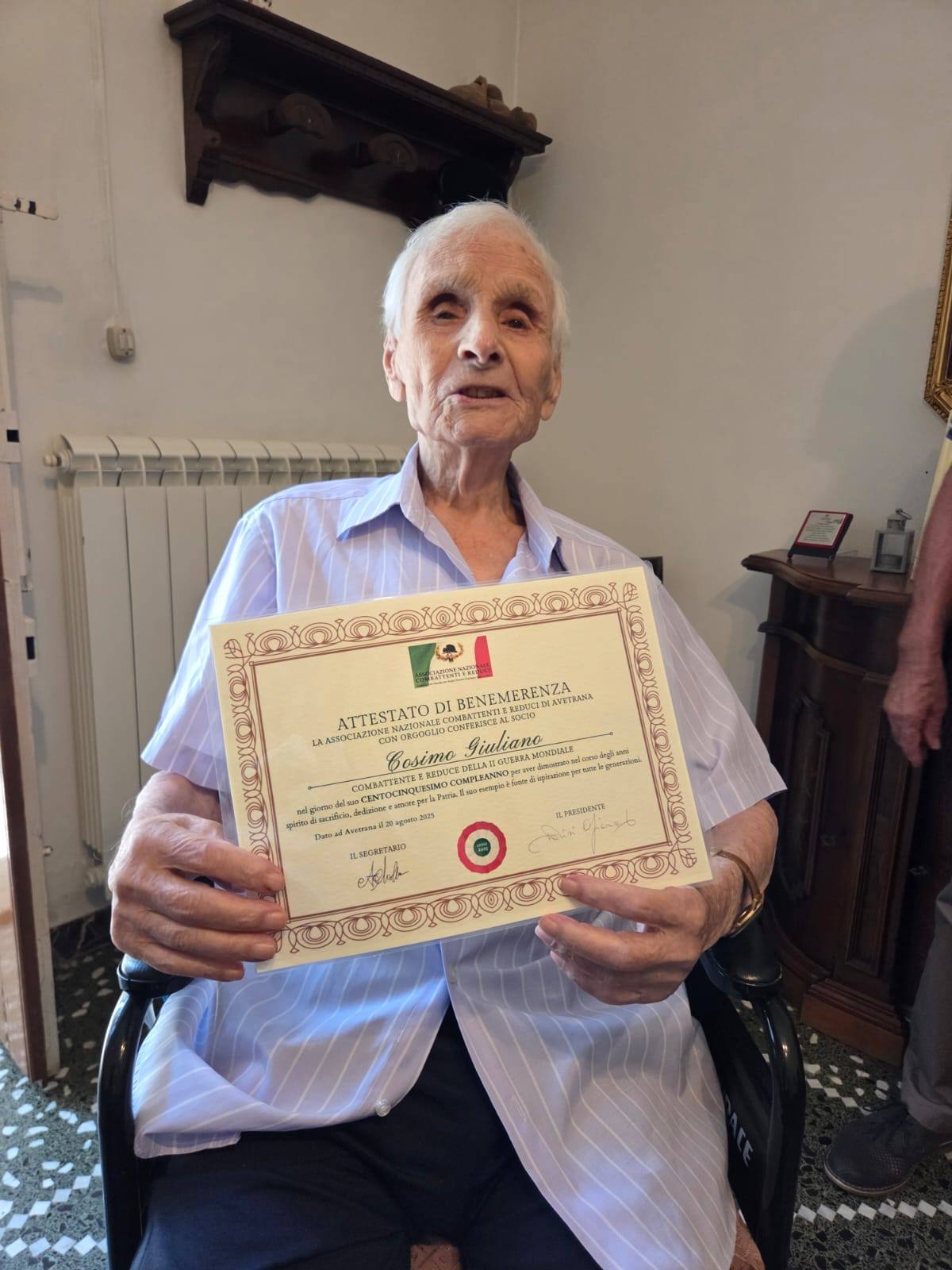 Sei un’istituzione non solo per il nostro territorio ma per l’intera nazione poiché reduci del secondo conflitto mondiale se ne contano pochi e noi come comunità avetranese ci onoriamo di averti al nostro cospetto».