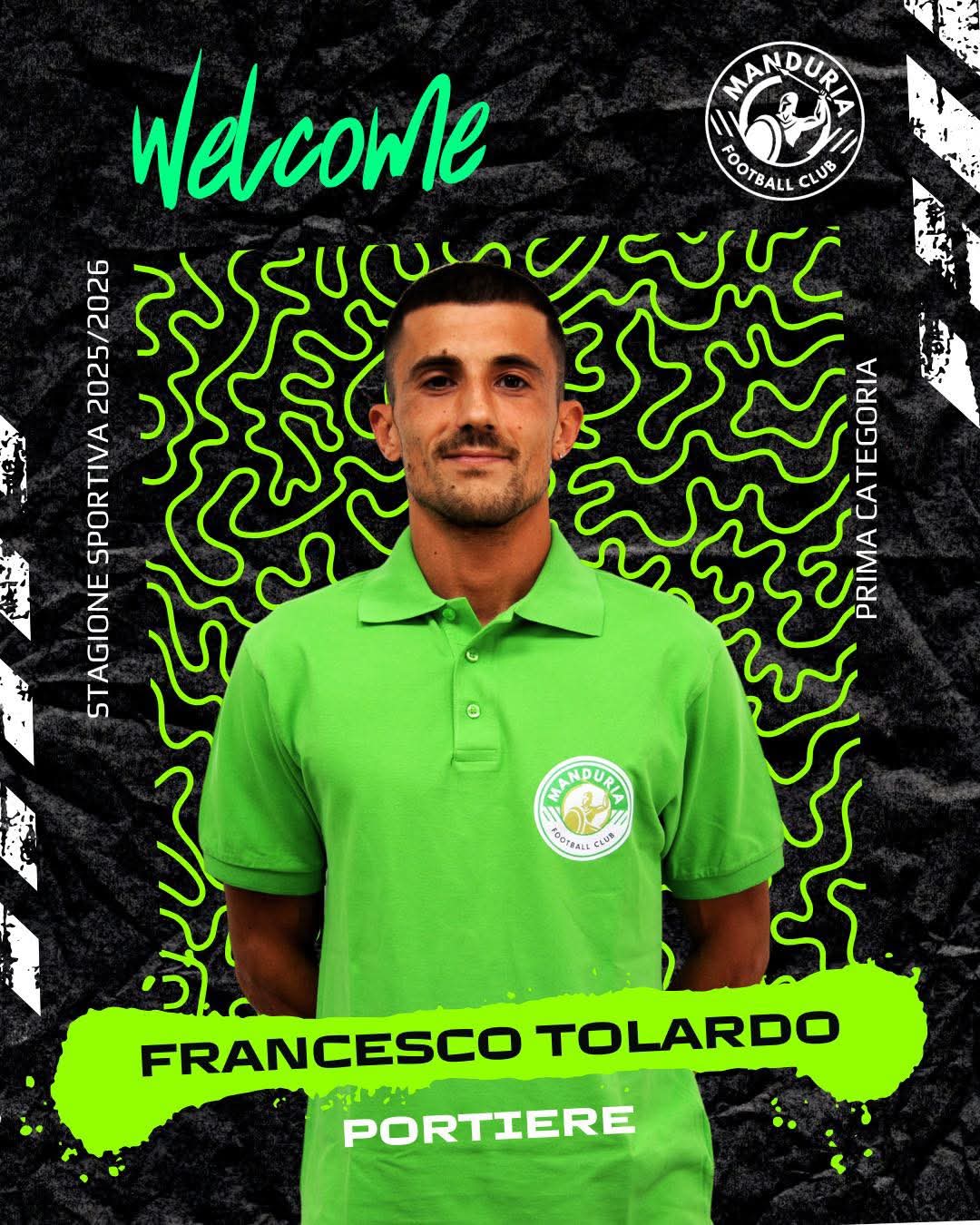 Vestirà il biancoverde del Football Club Manduria Francesco Tolardo, classe 1989, manduriano doc.