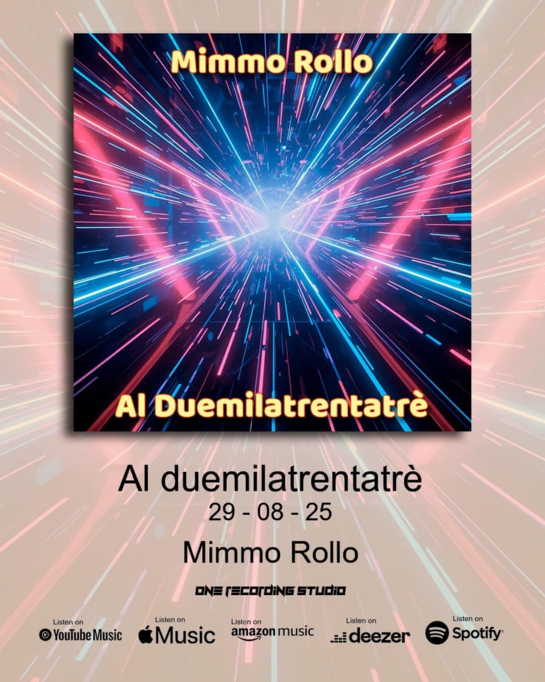 Da domani (29 agosto) su tutte le piattaforme il nuovo singolo di Mimmo Rollo: si intitola “Al duemilatrentatrè”.