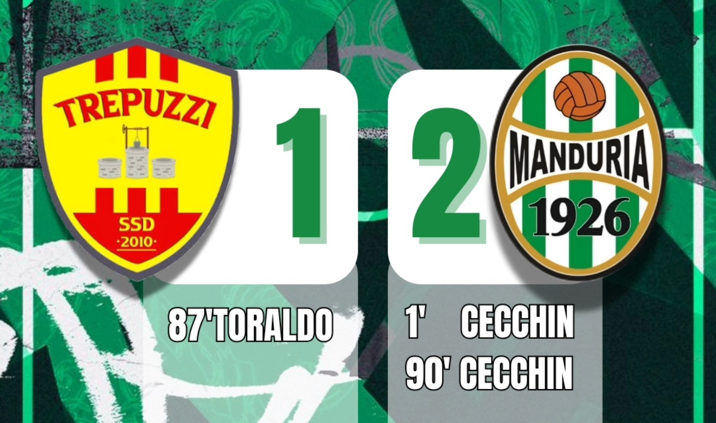 Ma la festa trepuzzina dura poco, in quanto il Manduria si riporta in vantaggio al 90’ con una prodezza di Cecchin che realizza la sua doppietta personale.