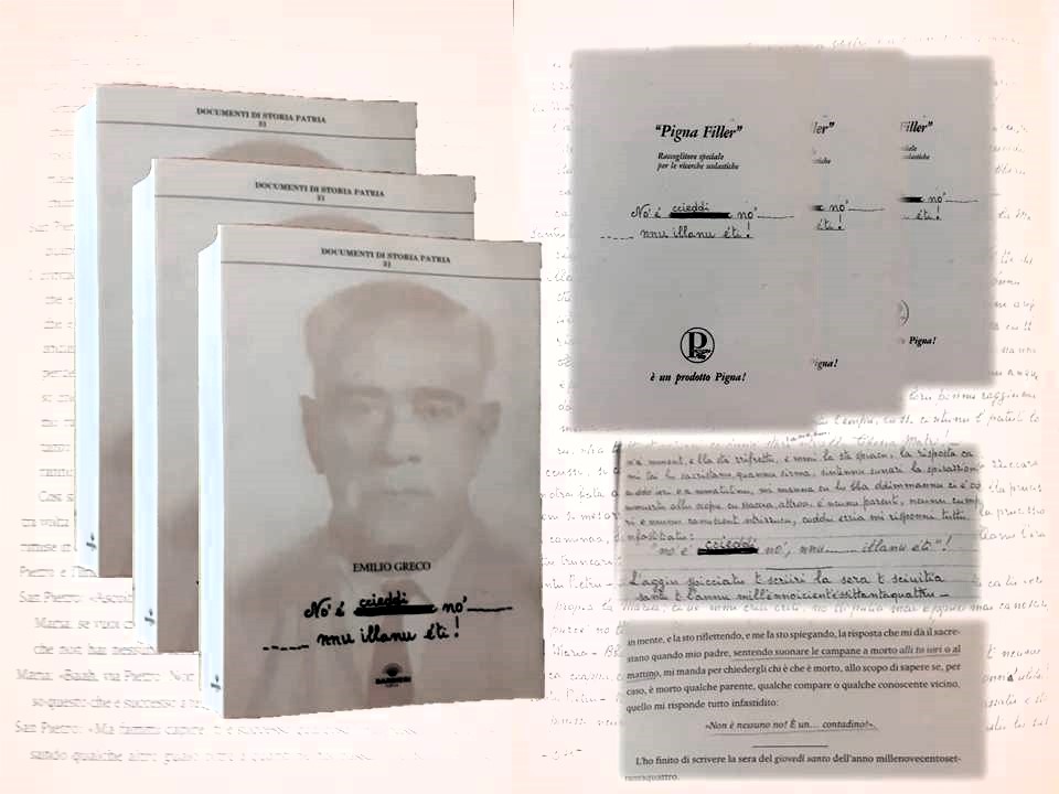 Il volume “No’ è cieddi no’… nnu illanu èti”, di Emilio Greco, è stato più volte da noi utilizzato per riportare alla memoria alcuni termini desueti del dialetto manduriano, essendo esso costituito dalla stampa di oltre duecento pagine manoscritte su fogli di computisteria “Pigna Filler”, in perfetto dialetto locale.