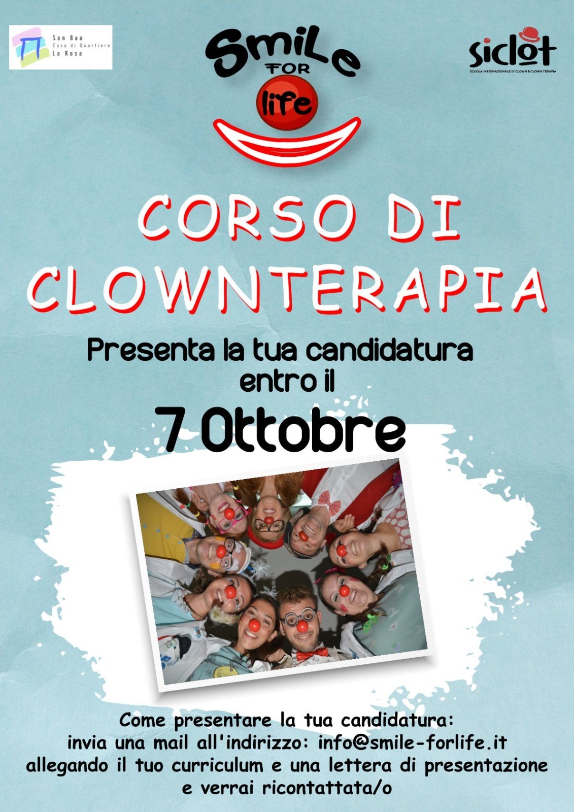 Ora c’è l’ufficialità: da ottobre parte il corso di clown terapia. E’ promosso dall’associazione Smile For Life in collaborazione con SICLOT (scuola internazionale di clow e clownterapia) e con San Baom casa di quartiere La Rosa, di Brindisi.