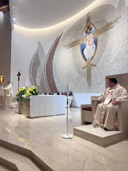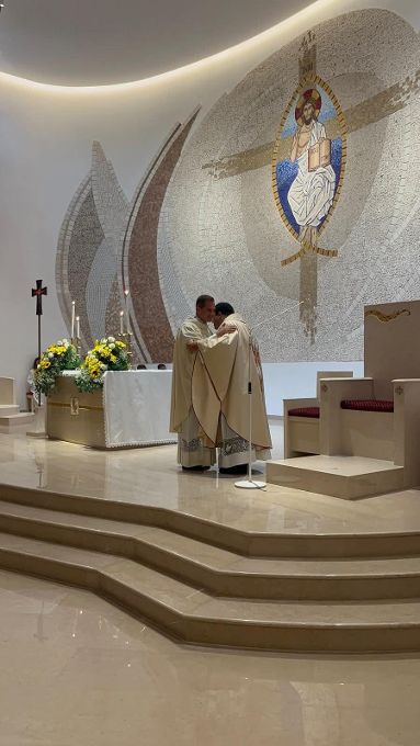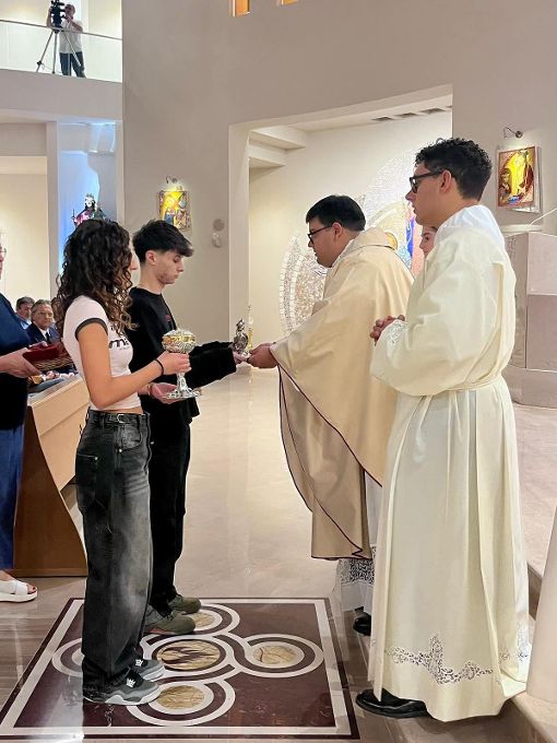 La casula che ha indossato don Cosimo é stato il dono dalla comunità parrocchiale per la sua Ordinazione. Durante i suoi ringraziamenti, ha anche comunicato che il vescovo Vincenzo, in data 15/09/2025, ha firmato la nomina che riguarda lui stesso come vicario della nostra comunità parrocchiale e ha chiesto il dono di un’Ave o Maria al giorno per il suo Ministero e per il Ministero di don Dario e di tutti i sacerdoti, promettendo che lui pregherà per noi tutti!