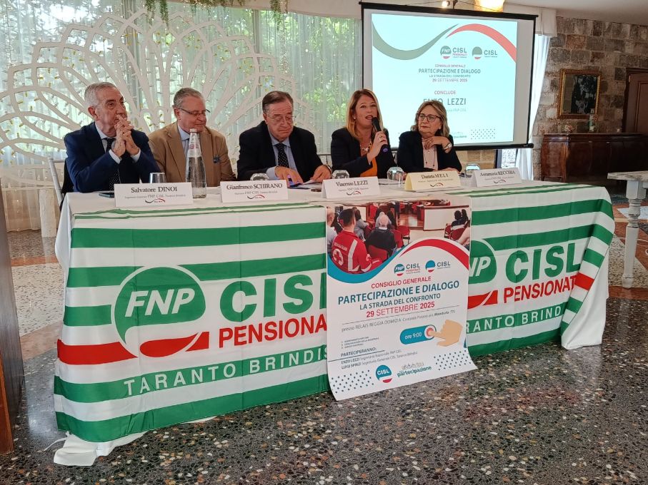 “Partecipazione e Dialogo - La Strada del Confronto”: è stato il tema del Consiglio generale della Federazione dei Pensionati Fnp Cisl Taranto Brindisi, tenutosi oggi presso il Relais Reggia Domizia, in contrada Pozzocupo, a Manduria.