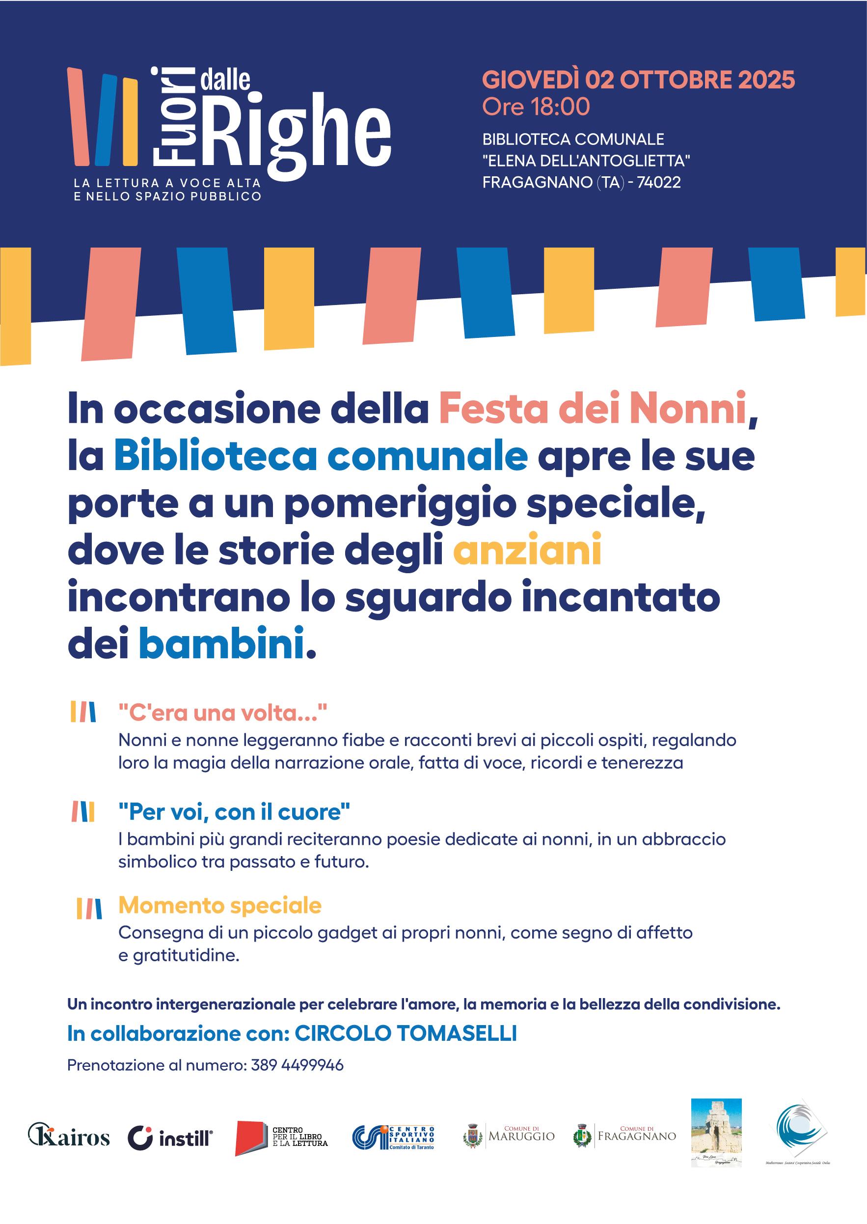 Domani, in occasione della Festa dei Nonni, la biblioteca comunale “Elena Dell’Antoglietta” ospiterà un pomeriggio speciale all’insegna delle emozioni, per celebrare il valore insostituibile dei nonni nella vita delle famiglie e della comunità.