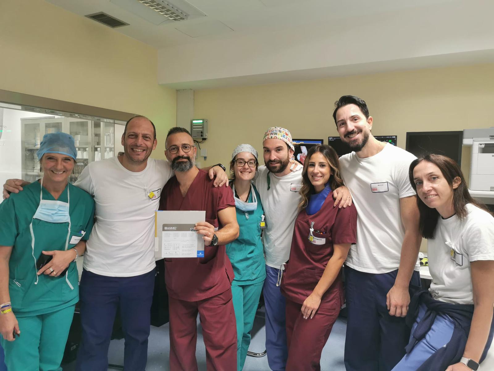 Ad eseguire l’intervento con microcatetere, il dottor David Rutigliano con il supporto dell’equipe medica e infermieristica del laboratorio di Emodinamica del San Paolo.