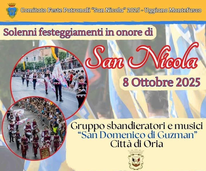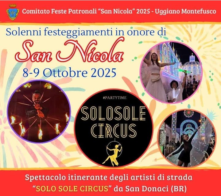 In serata, concerto serale della banda musicale e spettacolo itinerante del gruppo Sbandieratori e Musici “San Domenico di Guzman” di Oria e degli artisti di strada “Solosole Circus”.