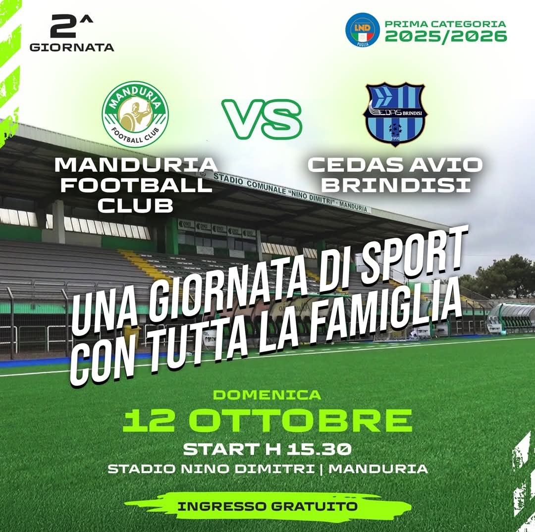 «Domenica si gioca in casa dove batte forte il nostro cuore: lo stadio Dimitri» è scritto in un post pubblicato sui social dal Football Club Manduria. «È il momento di riempire gli spalti, di far sentire la nostra, di vivere insieme la prima in casa del Football Club Manduria!