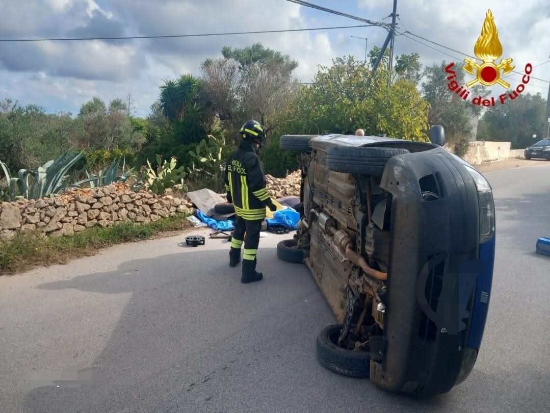 Incidente ad Ostuni: feriti marito e moglie. L’auto sulla quale viaggiavano si è ribaltata.
