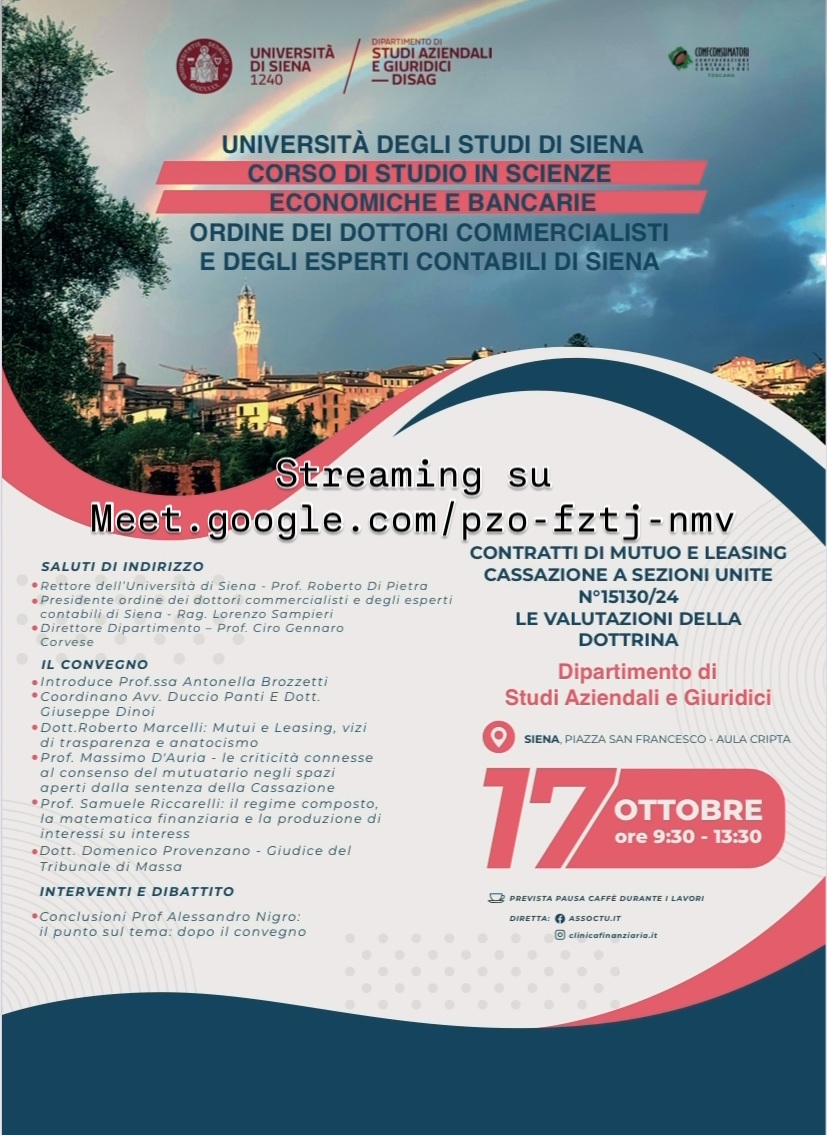 L’iniziativa è promossa dall’Università degli Studi di Siena (Corso di Studio in Scienze Economiche e Bancarie) e dall’Ordine dei Dottori Commercialisti e degli Esperti Contabili di Siena