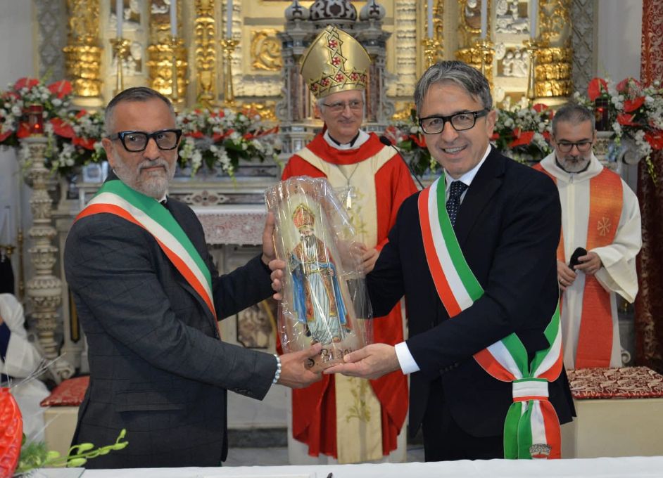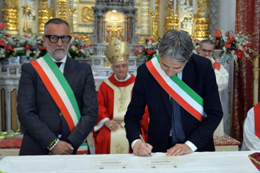 Domenica scorsa, in occasione dei festeggiamenti in onore di San Biagio a Carosino, i sindaci Onofrio Di Cillo (Carosino) e Antonio Iazzi (Avetrana) hanno sottoscritto ufficialmente il Patto di Amicizia tra le due comunità, unite dalla comune devozione per San Biagio, Santo Patrono.