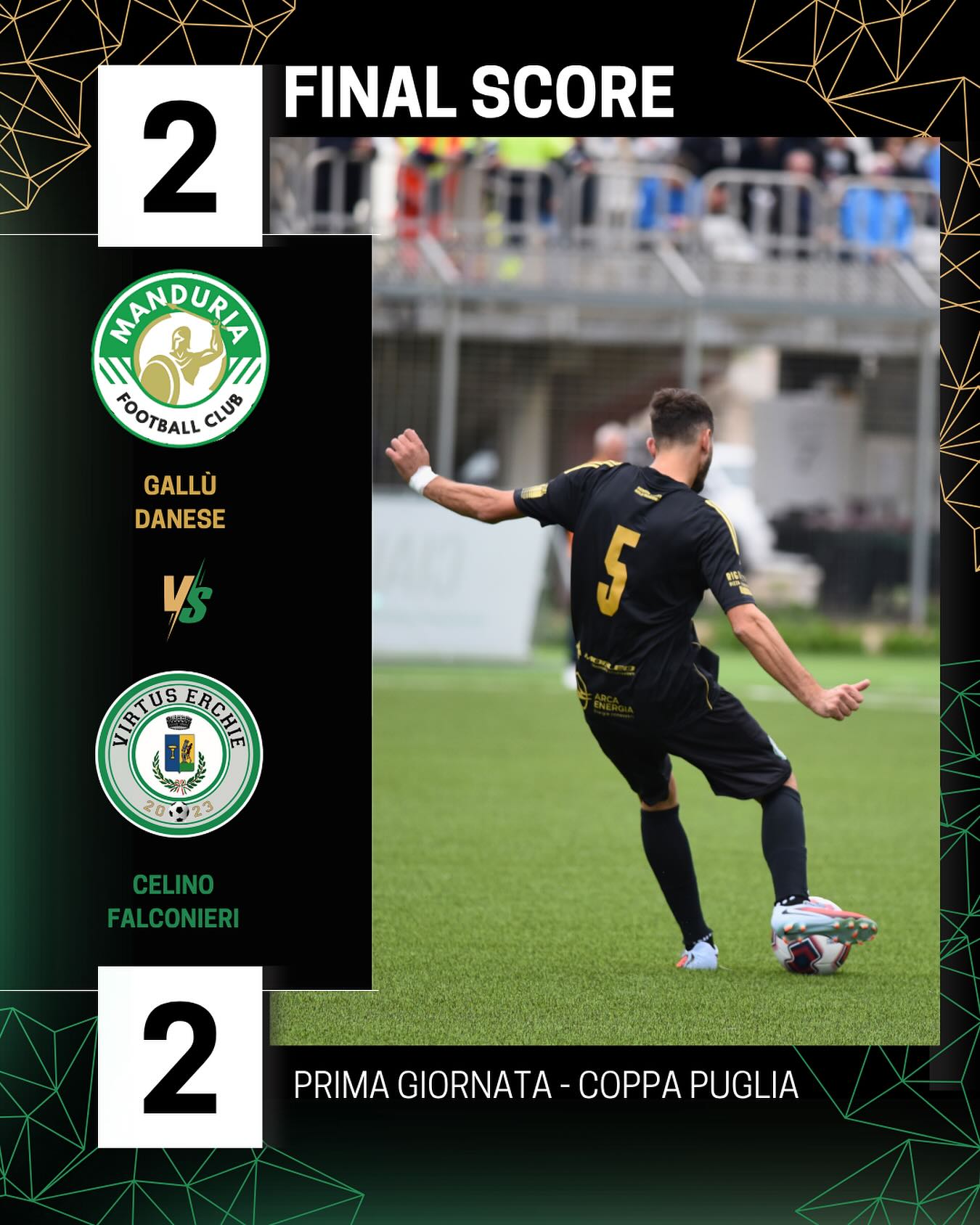 Festa del calcio, con una partita ricca di gol ed emozioni quella fra Football Club Manduria e Virtus Erchie, valida come andata del primo turno di Coppa Puglia.