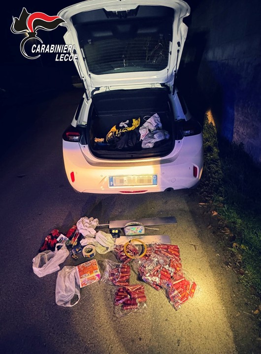 Sono stati inoltre sequestrati due involucri metallici (“marmotte”) idonei all’utilizzo esplosivo, una miccia a lenta combustione, strumenti da scasso, dispositivi elettronici, chiavi da configurare, passamontagna, guanti e quattro telefoni cellulari.