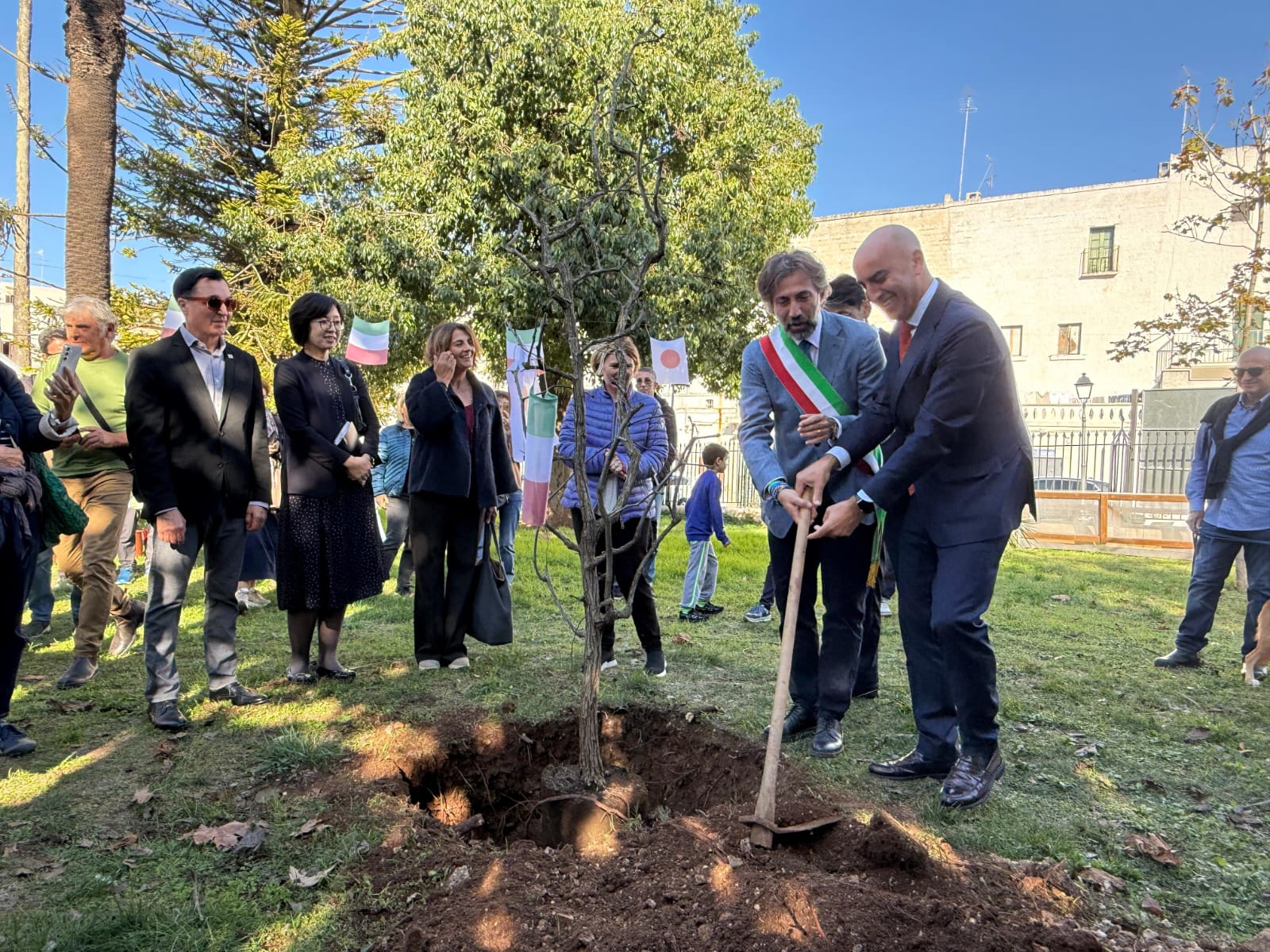 Ieri (domenica 2 novembre), nella villa comunale “Sandro Pertini” di Ostuni, si è svolta la cerimonia di messa a dimora dell’Hibakujumoku di Hiroshima, un esemplare di Giuggiolo (Ziziphusjujuba), discendente degli alberi sopravvissuti al bombardamento atomico del 1945. Un gesto dal forte valore simbolico, che ha segnato la chiusura della 11ª edizione autunnale di Hortus Ostuni, la mostra-mercato dedicata al verde, alla sostenibilità e alla cultura della pace.