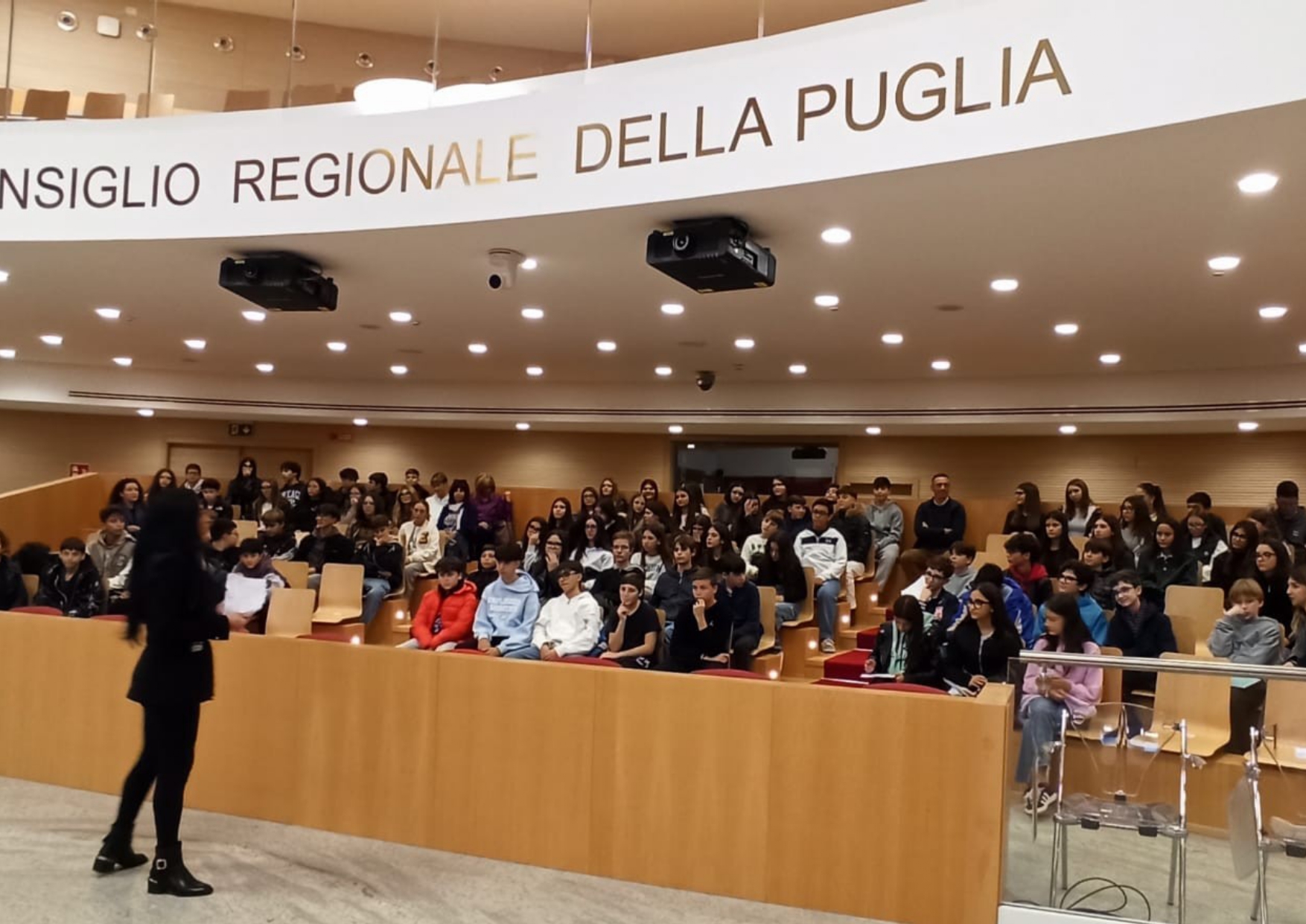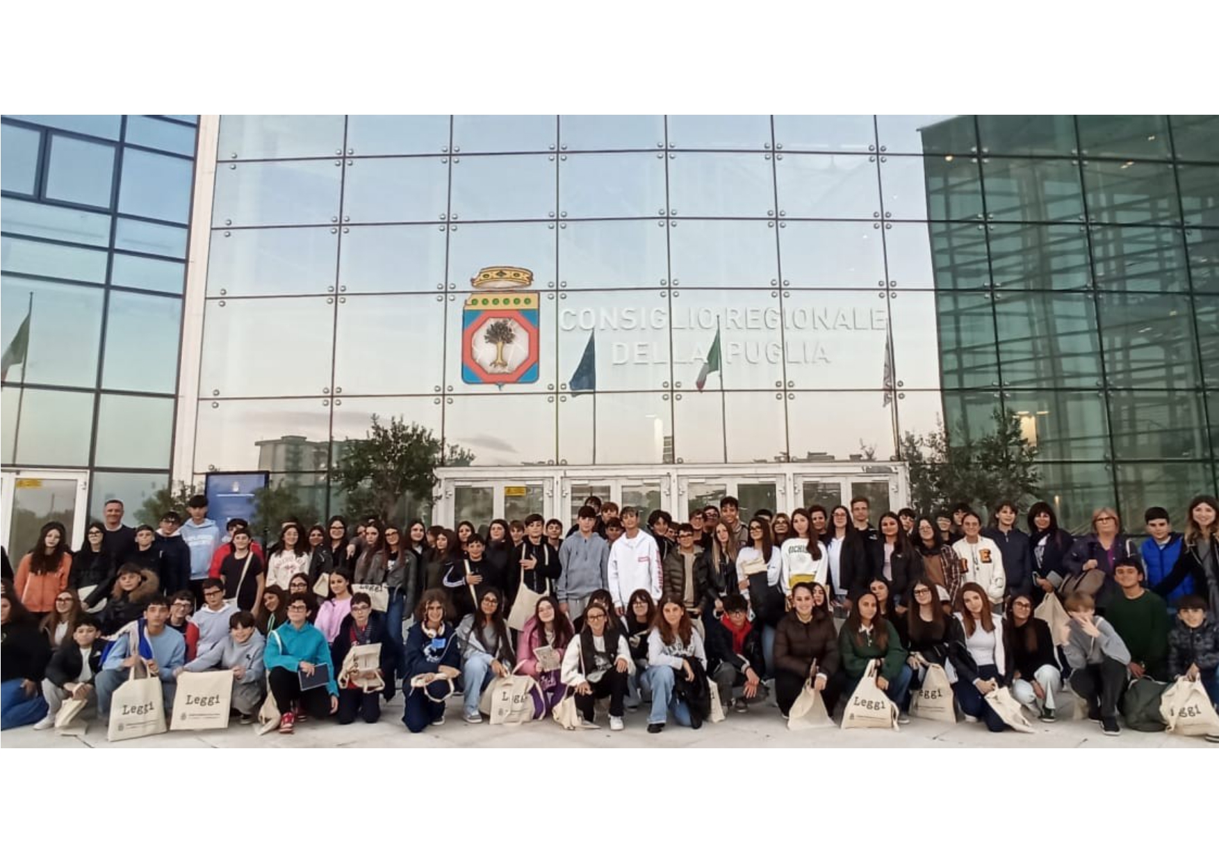 Circa cento alunni delle classi terze della scuola secondaria di 1° grado delle sedi “Prudenzano” e “Fermi” hanno visitato la sede del Consiglio eegionale a Bari.