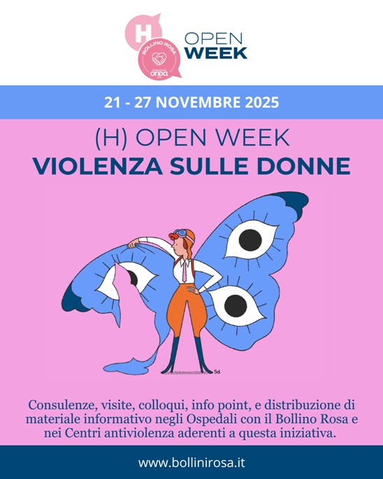 In occasione della Giornata Internazionale per l’eliminazione della violenza contro le donne che si celebra il 25 novembre, gli ospedali Santissima Annunziata di Taranto e San Pio di Castellaneta aderiscono all’iniziativa (H)Open Week organizzata dalla Fondazione Onda ETS, in programma dal 21 al 27 novembre. L’iniziativa, a carattere nazionale, ha l’obiettivo di incoraggiare le donne vittime di violenza a chiedere aiuto e a usufruire della rete di servizi dedicati all’ascolto, al supporto e all’accoglienza protetta, offrendo servizi clinici, informativi, consulenze e colloqui gratuiti negli ospedali della rete Bollino Rosa, della quale i due ospedali ionici fanno parte.