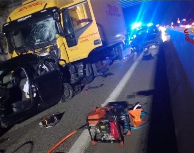 Lungo la strada statale 613, all’altezza di Torchiarolo, sono stati coinvolti un camion e due auto. In una di queste auto viaggiava una coppia. La donna era all’ottavo mese di gravidanza. Sia l’uomo che la donna sono risultati gravemente feriti. La donna è stata estratta dalle lamiere dai vigili del fuoco e condotta in codice rosso in ospedale dove è stata sottoposta ad un taglio cesareo d’urgenza, ma il bimbo è nato morto per i politraumi della mamma.