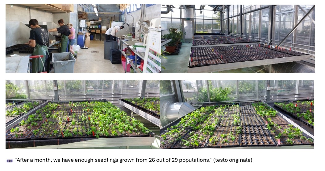 I semi sono stati interrati in serra, suddivisi in 29 popolazioni e tracciati con etichette colorate. Dopo un mese, le piante di 26 popolazioni hanno germinato con successo.