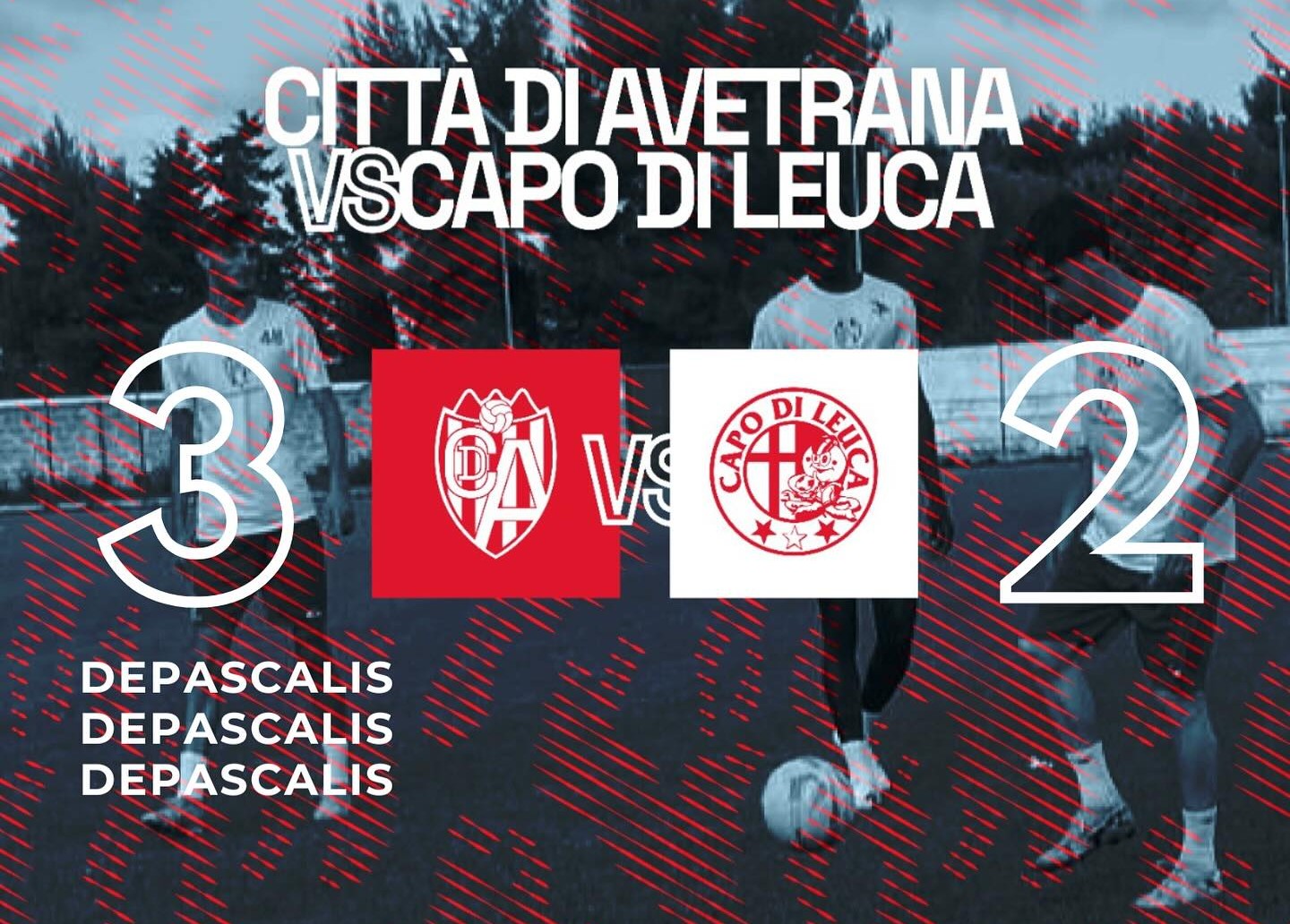 E’ un’altra Città di Avetrana: più tonica, più determinata, più lineare nelle trame di gioco. Città di Avetrana che ha ritrovato anche le reti della sua punta di diamante: ieri De Pascalis ha firmato una tripletta, grazie alla quale i biancorossi hanno battuto il forte Capo di Leuca, terzo in classifica.