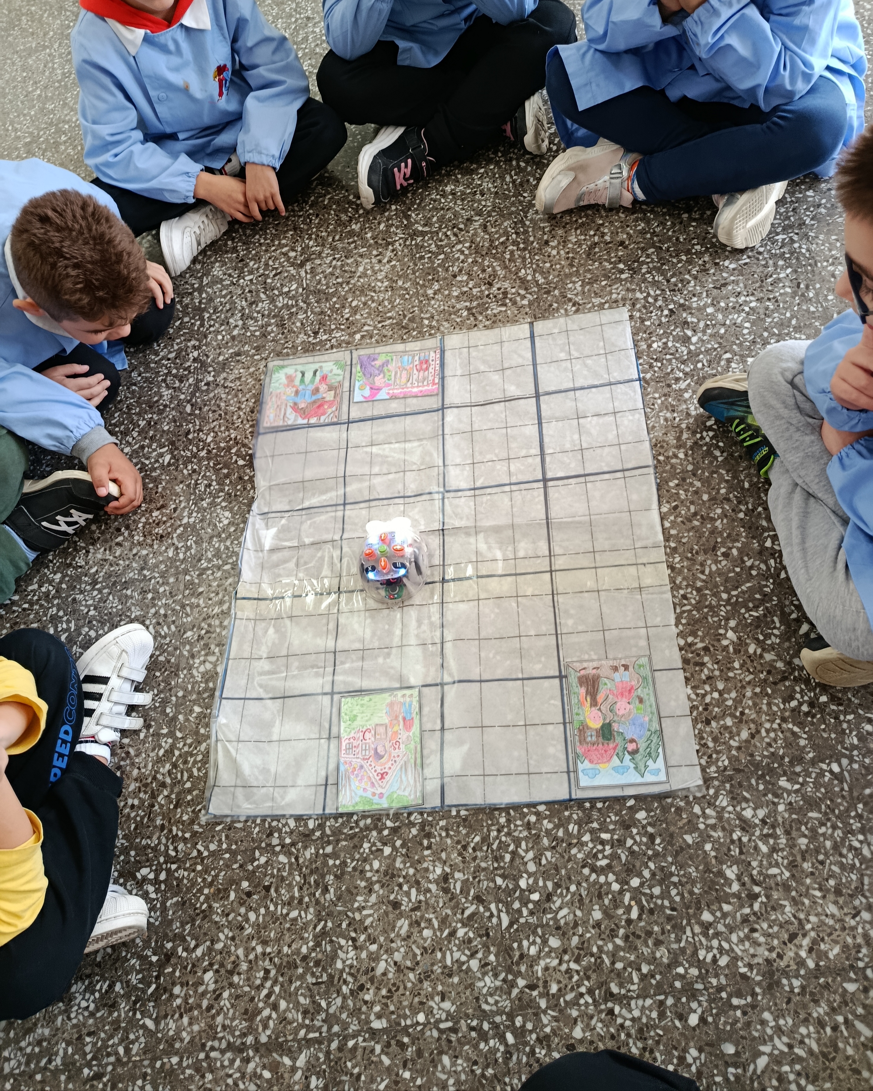 A seguire, gli alunni sono stati coinvolti in un laboratorio musicale che ha previsto la riproduzione dei suoni del bosco attraverso l’uso della voce e un’esecuzione ritmico– canora con tamburelli. In raccordo con le discipline della matematica, della tecnologia e della geografia, i docenti hanno poi ideato attività di coding, di orientamento e percorsi sul pavimento utilizzando il Blue-Bot, un robot educativo che ha suscitato grande interesse e divertimento.