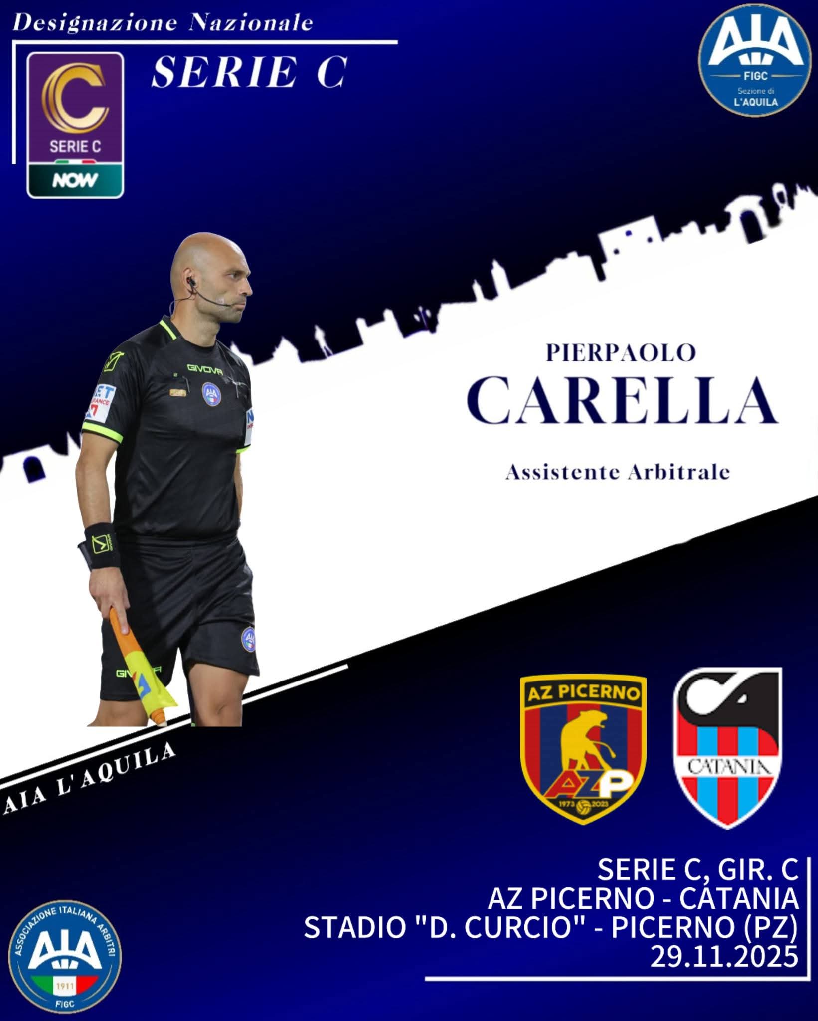 Pierpaolo Carella (AIA L’Aquila) è stato designato come assistente per l’incontro fra Picerno e Catania.
