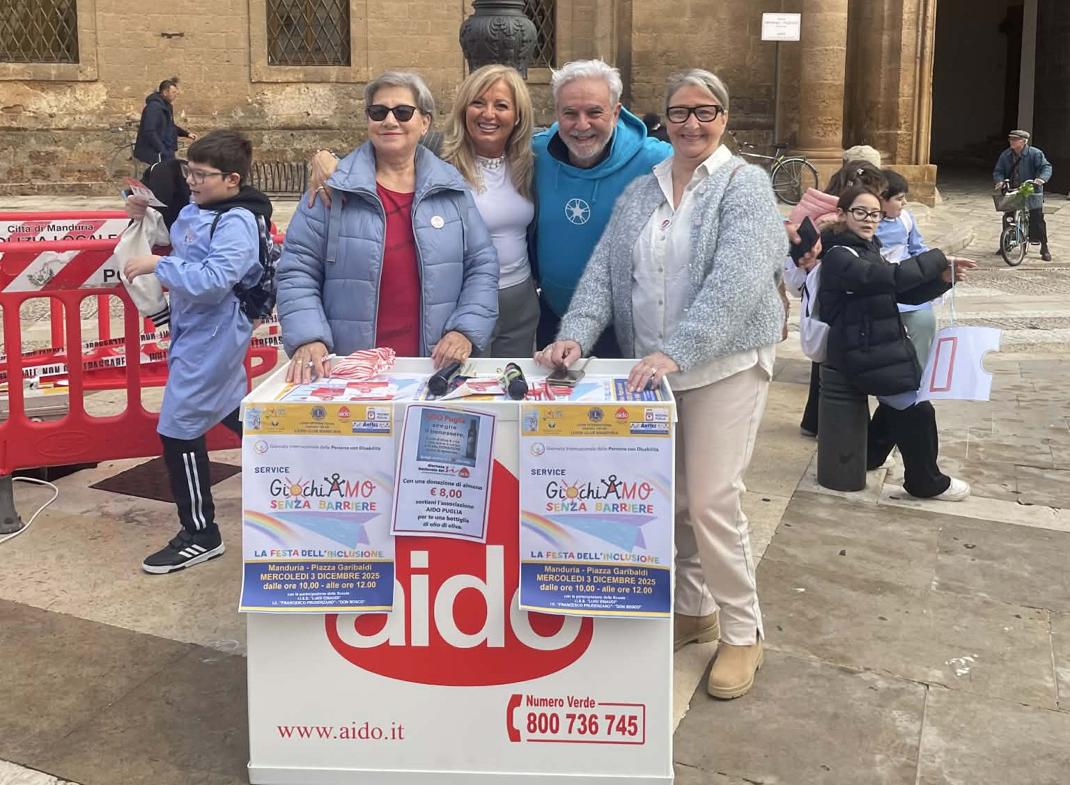 AIDO – Gruppo comunale “Vincenzo Urbano” Manduria, Anffas Manduria, La Vite soc. coop. sociale, Nuova Luce, con il patrocinio della Regione Puglia. Una rete importante, unita dall’obiettivo comune di promuovere la cultura dell’inclusione e abbattere ogni forma di barriera, fisica o culturale.