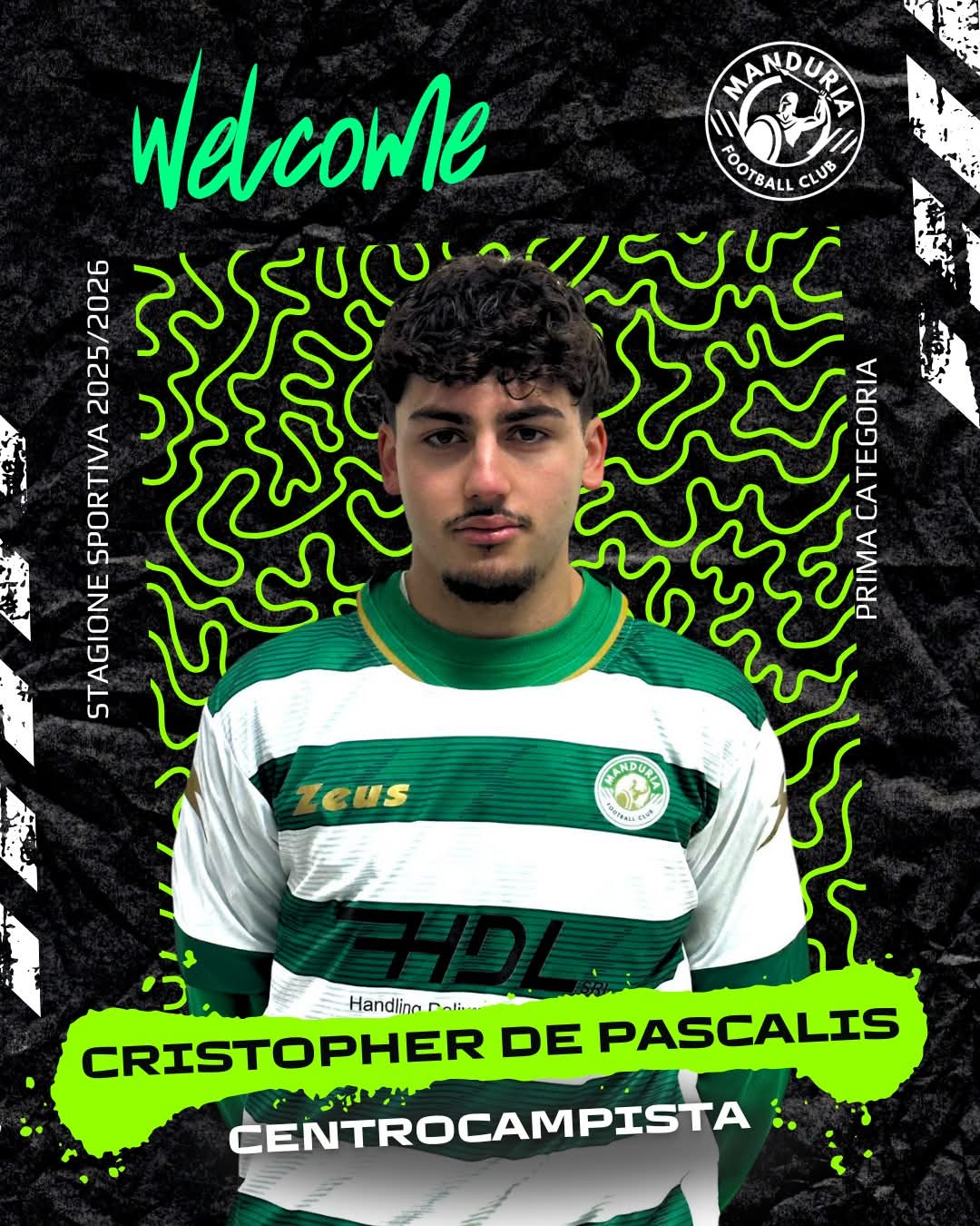 Christopher De Pascalis, classe 2005: talento, corsa e intensità. Giocatore offensivo moderno, cresciuto tra Brindisi, Gallipoli e Sava. Energia pura per il nostro reparto avanzato.