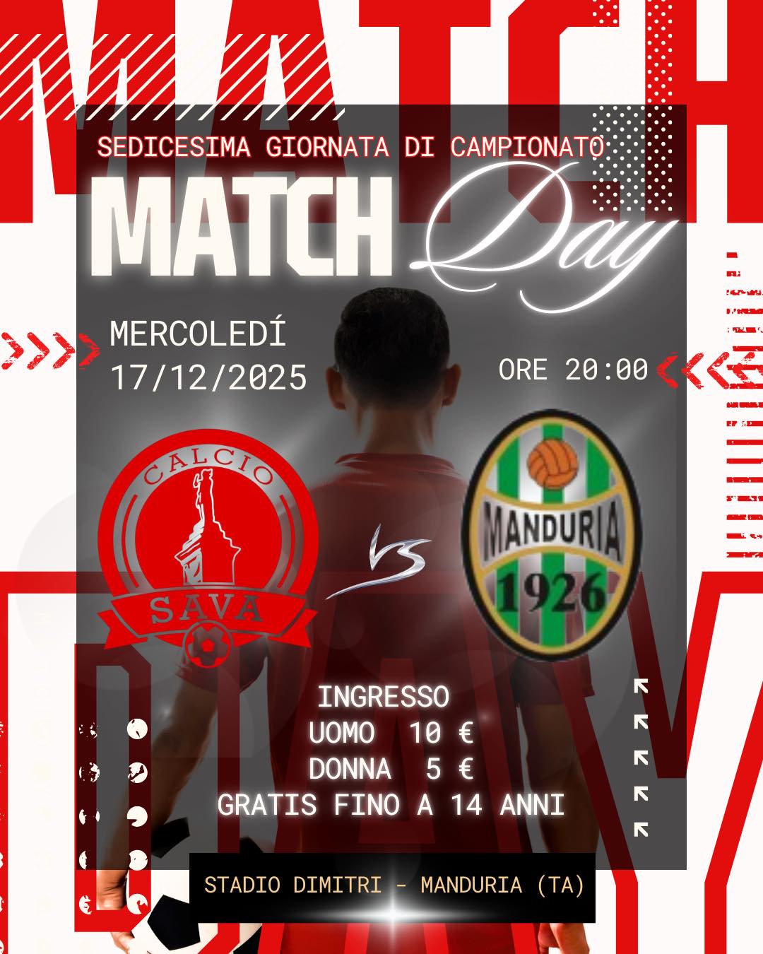 Per l’indisponibilità dello stadio di Sava, l’incontro si disputerà a Manduria: i tifosi biancoverdi potranno assistervi dalla tribuna