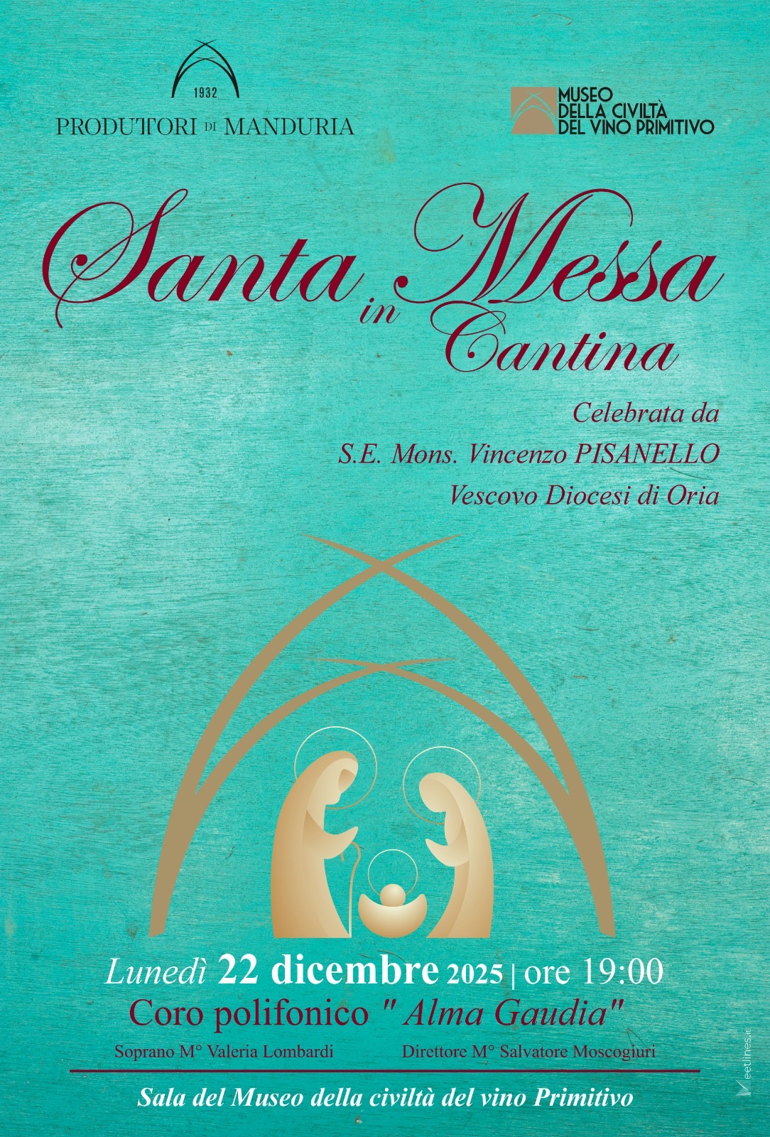 Lunedì 22 dicembre, alle ore 19, presso la cantina Produttori di Manduria, il Vescovo di Oria mons. Vincenzo Pisanello