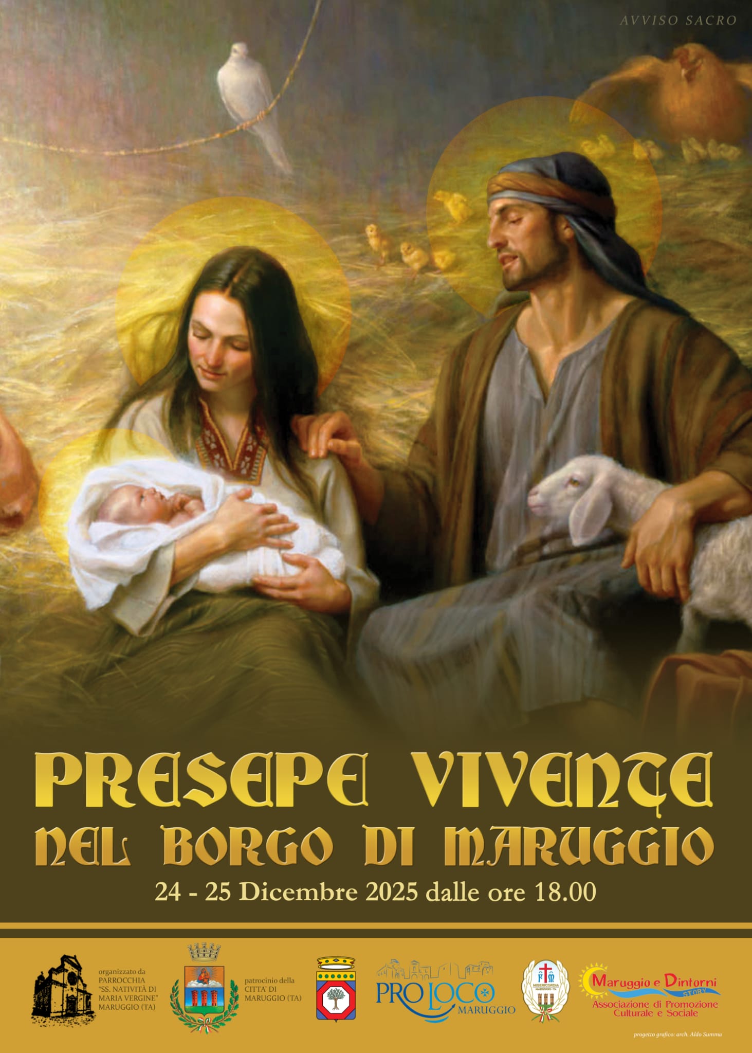 L’iniziativa nasce dal coinvolgimento spontaneo e volontario di uomini, donne e giovani della parrocchia “SS. Natività di Maria Vergine”, che, insieme al parroco don Alessandro Mayer, hanno dato vita al progetto con dedizione e spirito di servizio. Fondamentale anche il contributo delle associazioni locali, tra cui la Pro Loco Maruggio, la Misericordia, il gruppo “L’Amici” e numerosi altri volontari, uniti dall’obiettivo comune di offrire alla comunità e ai visitatori un’esperienza autentica e condivisa. Il presepe vivente gode del patrocinio del Comune di Maruggio e del contributo della Regione Puglia. Media partner dell’evento è “Maruggio e Dintorni Story”.
