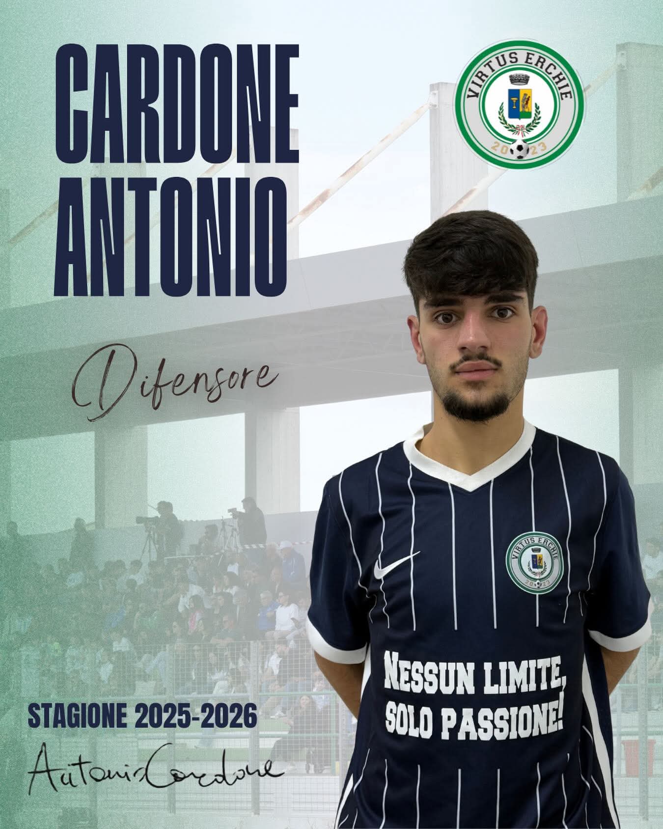 La Virtus Erchie annuncia l’ingresso in rosa di Antonio Cardone, difensore pronto a dare solidità e grinta al reparto.