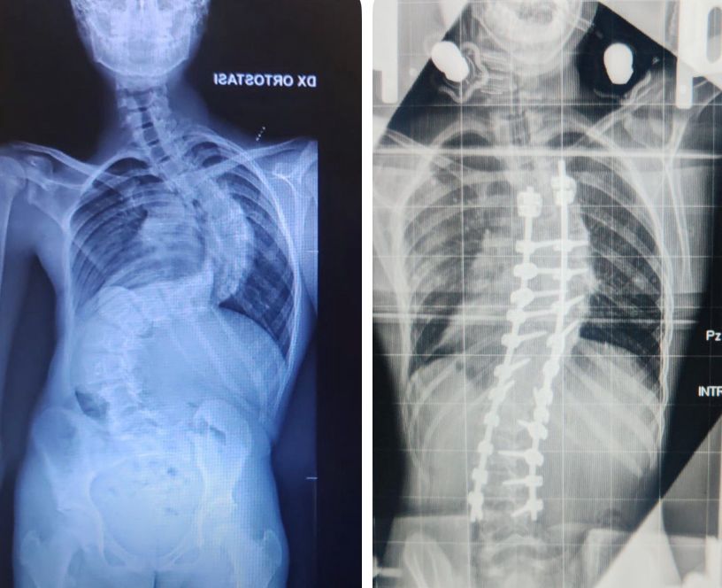 “Francesco – spiega il dottor Piazzolla – era affetto da una forma di scoliosi aggressiva, con un peggioramento impressionante: oltre 30 gradi in appena tre mesi. Una progressione rapidissima che ha imposto una preparazione preoperatoria complessa e meticolosa. Per più di un mese il ragazzo ha vissuto stabilmente in ospedale, sottoposto a trazione continua con un sistema speciale, l’halo, un dispositivo che consente di preparare progressivamente la colonna vertebrale a un intervento tanto delicato grazie al quale siamo riusciti a ridurre la scoliosi a 45 gradi”.