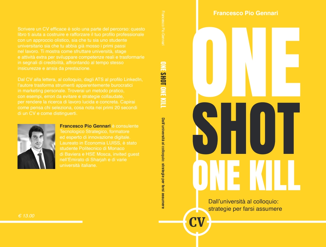 “One Shot One Kill: dall’università al colloquio – strategie per farsi assumere”, del pugliese Francesco Pio Gennari, sorprende invece proprio per questo: per il suo taglio lucido, quasi clinico, che supera la tradizionale retorica motivazionale. Già entrato nelle classifiche Amazon di categoria, il libro si distingue per l’assenza di trionfalismi.