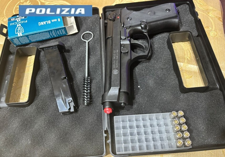 Individuato lo scenario della vicenda grazie alla conoscenza del territorio e ricostruendo la cronologia della pubblicazione del video, i Falchi della Squadra Mobile hanno individuato il presunto autore in un 32enne di Lizzano, rinvenendo presso la sua abitazione una pistola marca Bruni a salve mod. 92 cal. 8 con tappo rosso, simile a quella utilizzata nel video.