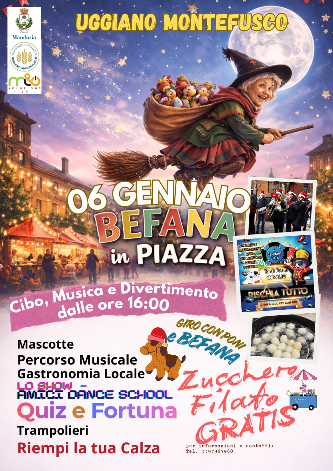 Ritorna, ad Uggiano Montefusco, l’iniziativa “La Befana in Piazza”, promossa dal Comitato Cittadino Uggiano Montefusco.