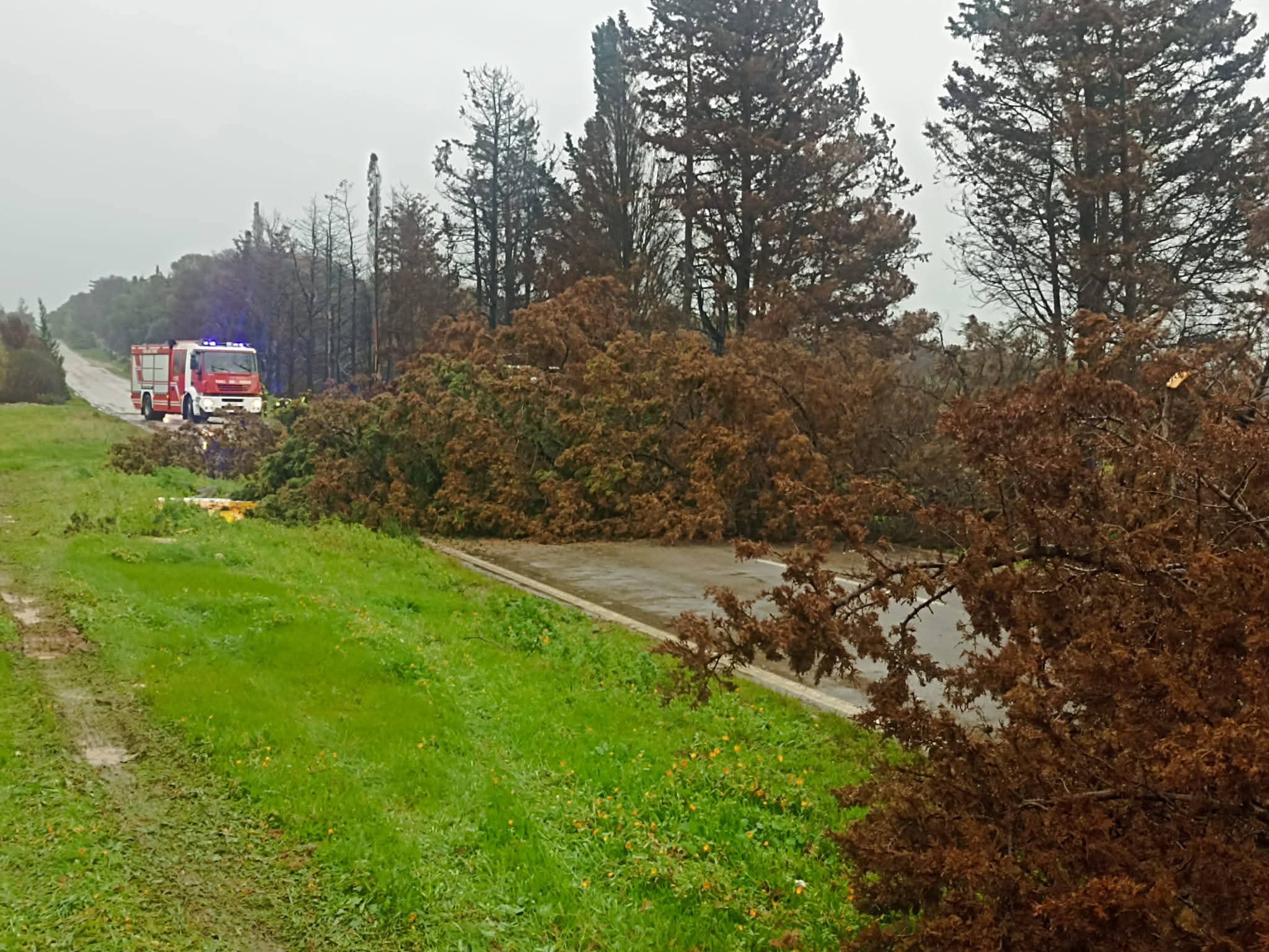 Il forte vento che ha caratterizzato il temporale delle ultime ore ha causato la caduta di alcuni alberi (tutti interessati dall’incendio dell’estate scorsa) sulla carreggiata della strada Maruggio-Manduria.
