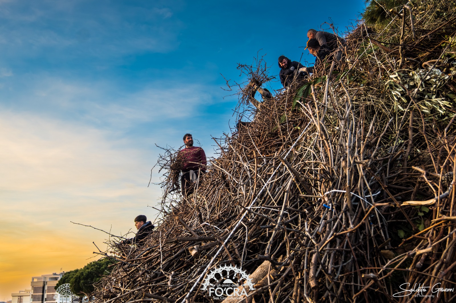 «Mettere mano alla terra, tracciare i primi segni, sentire il profumo del legno e del sudore: è da qui che nasce la Fo’cra. Non è solo una piramide di legna, ma promessa, preghiera e popolo» dichiara Giulio De Carolis, assessore alle Politiche Agricole, Sviluppo Rurale e Promozione delle Tradizioni del Comune di Grottaglie, che in questi ultimi anni ha dato maggiore impulso alla tradizione della grande pira detta Fo’cra, essendo tra i pionieri dell’associazione Amici della Fo’cra (presieduta oggi da Giuseppe Donatelli), fondata nel 2021 per ampliare una visione amministrativa dell’evento, inquadrandolo in un percorso di turismo religioso e di tradizione popolare, con l’ODV che è arrivata a contare cinquanta soci volontari, guidati dai maestri del fuoco, che per l’annuale Pira del 30 gennaio lavorano un anno intero.