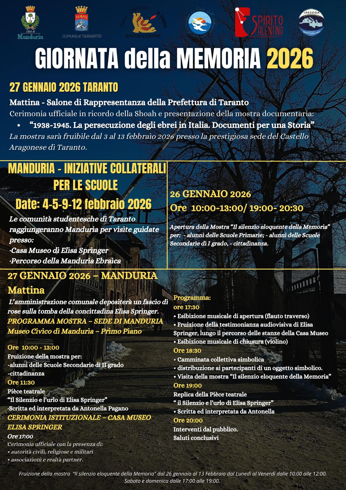 L’Amministrazione comunale di Manduria provvederà alla deposizione di un fascio di rose sulla tomba della concittadina Elisa Springer, quale gesto simbolico di memoria e riconoscenza.