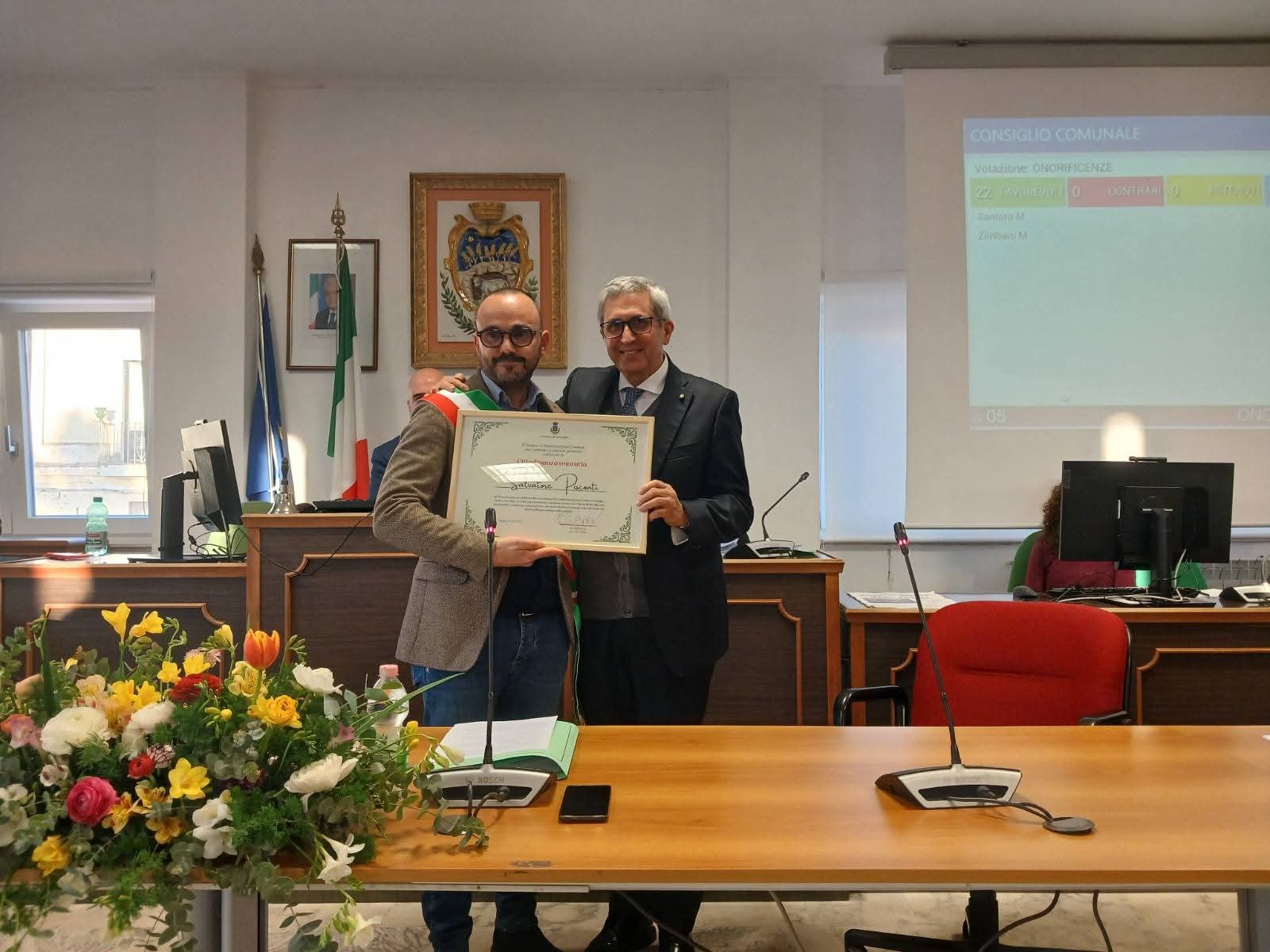 «L’intera Amministrazione comunale, senza distinzione alcuna, ha fortemente voluto questo momento di conferimento della cittadinanza onoraria al medico oncologo Salvatore Pisconti, e delle civiche benemerenze alle associazioni ANT, Retake e Croce Rossa, delegazioni di Grottaglie.