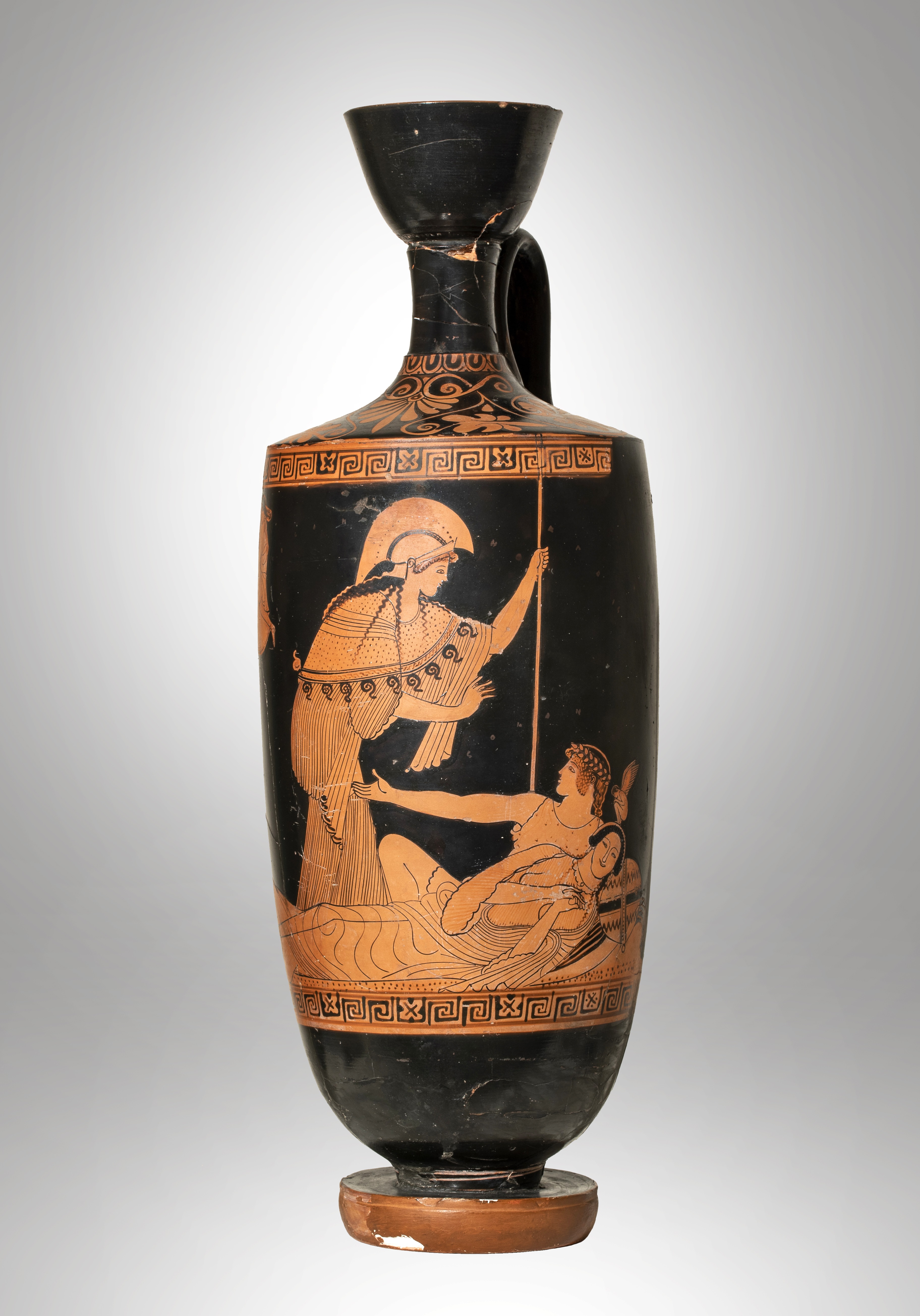 E’ il caso della lekythos attica a figure rosse (470/460 a.C.) in cui si riconoscono Teseo sedotto dalla dea Athena e vicino a lui Arianna addormentata. La scena secondo la mitologia si svolge sull’isola di Nasso. Teseo abbandonò Arianna proprio lì sull’isola greca dando origine, probabilmente all’espressione verbale “piantata in (n)asso”.