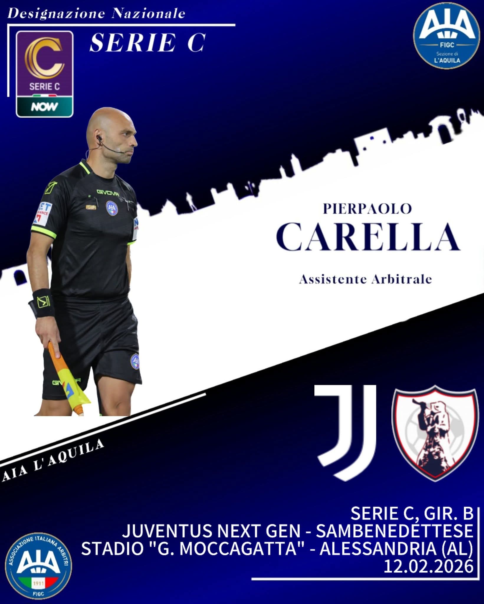 Pierpaolo Carella (Aia L’Aquila) è stato designato come assistente per l’incontro fra Juventus Next Gen e Sambenedettese.