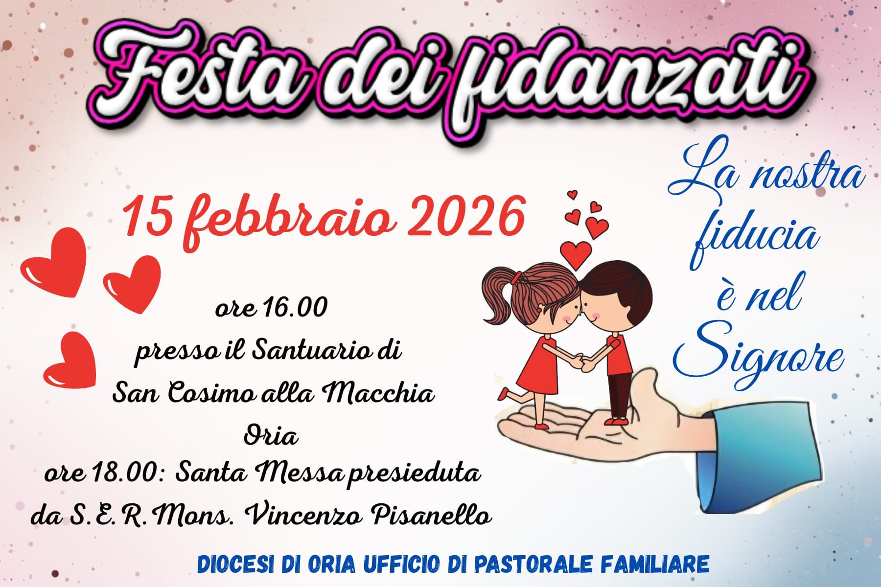 Si terrà domenica 15 febbraio 2026 la “Festa dei fidanzati”, promossa dall’Ufficio di Pastorale Familiare della Diocesi di Oria.