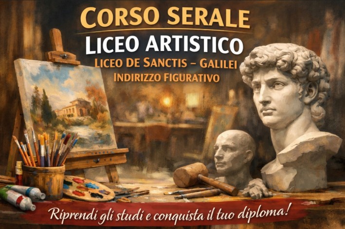 Il liceo “De Sanctis – Galilei” di Manduria annuncia l’apertura delle iscrizioni per l’anno scolastico 2026/2027 al corso serale del liceo Artistico – indirizzo Figurativo, dedicato all’istruzione degli adulti (secondo livello), autorizzato dalla Regione Puglia con Deliberazione di Giunta Regionale n. 1658 del 30/10/2025.