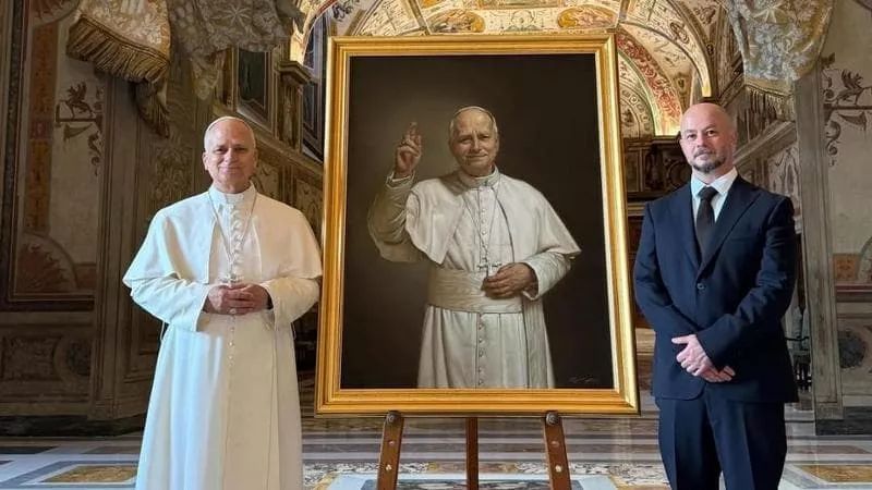 L’artista tarantino Roberto Ferri ha consegnato al Papa il suo ritratto ufficiale. Sarà esposto nella straordinaria cornice della Sala Ducale in Vaticano, sotto lo sguardo eterno di un grande capolavoro del Bernini.