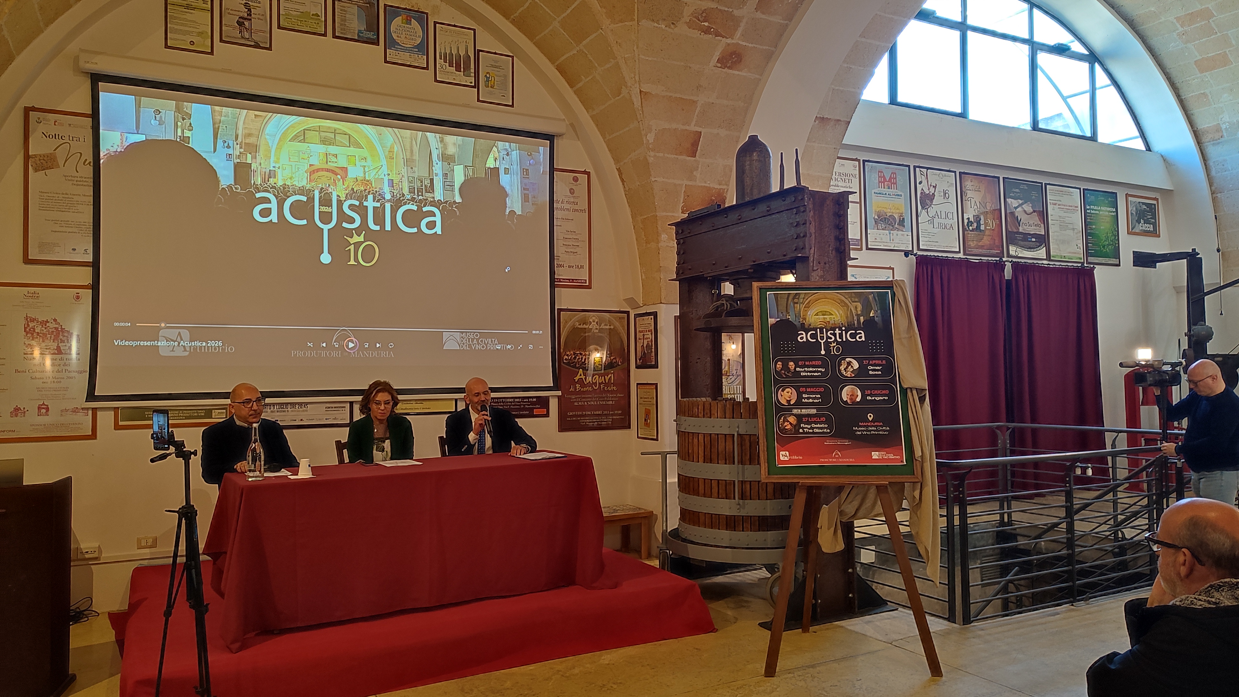 Il cartellone 2026 è stato presentato oggi alla stampa nella Sala Conferenze della cantina Produttori di Manduria, che da sempre ospita i concerti di Acustica, organizzandoli insieme con l’ente culturale del Terzo Settore Artilibrio.