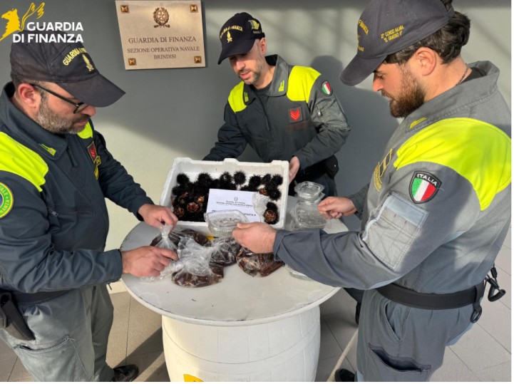 Nel corso di mirati pattugliamenti in mare e lungo la costa i finanzieri hanno sequestrato complessivamente 13,5 chilogrammi di datteri di mare, 3 chilogrammi di novellame e 45 chilogrammi di ricci di mare.
