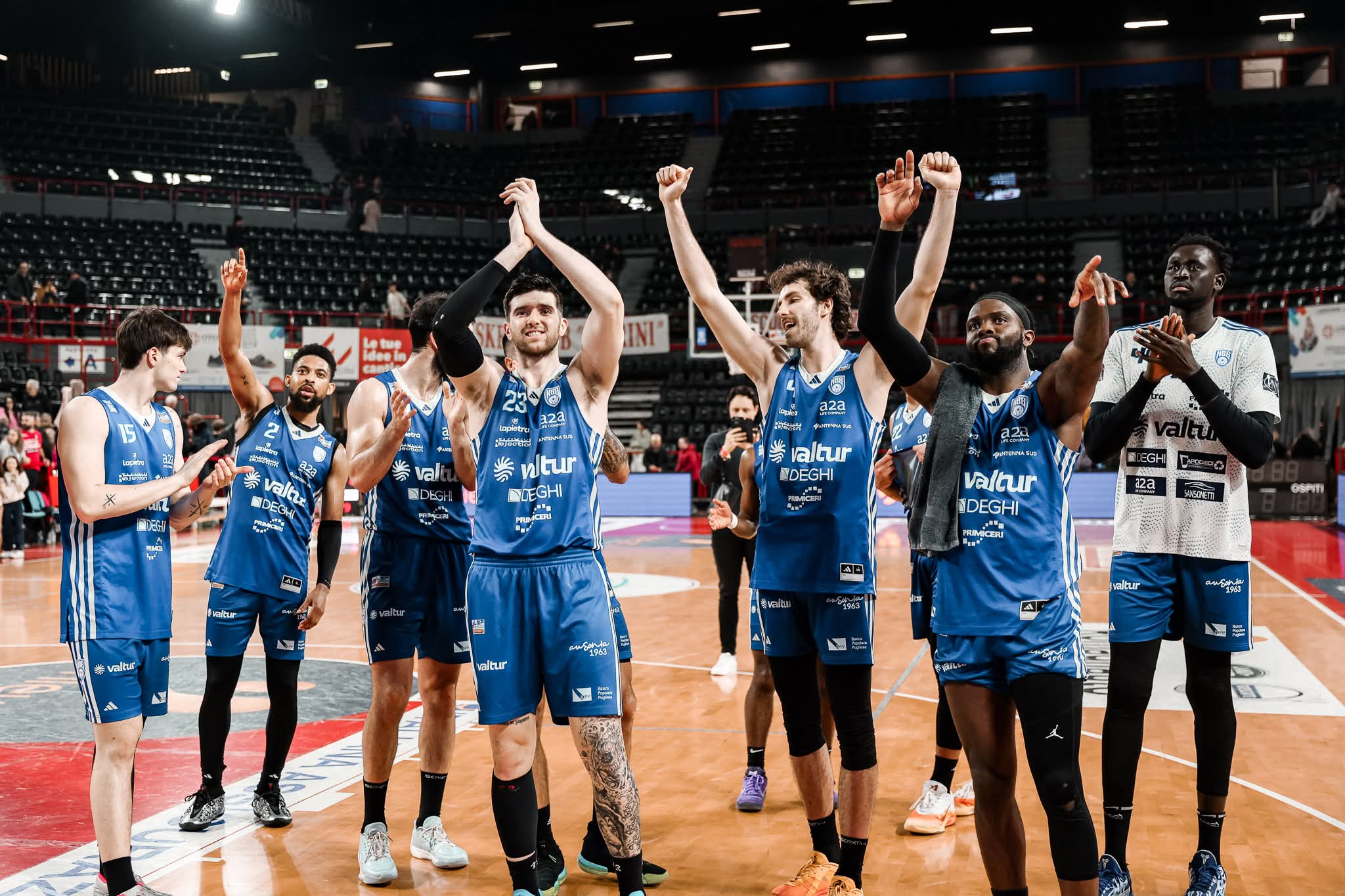 Dopo tre sconfitte esterne consecutive, la Valtur Brindisi batte un colpo in trasferta e lo fa nel recupero della 27esima giornata di Serie A2 che le permette di agganciare la vetta a quota 38 punti in coabitazione con Pesaro, che può tuttavia contare sulla migliore differenza punti nello scontro diretto. Match difficile e combattuto, deciso nei minuti finali dalla fiammata di Francis decisivo con sette punti negli ultimi due minuti d’incontro dopo il sorpasso dei padroni di casa grazie a una prestazione gagliarda e mai doma di tutti gli effettivi a disposizione di coach Martino.