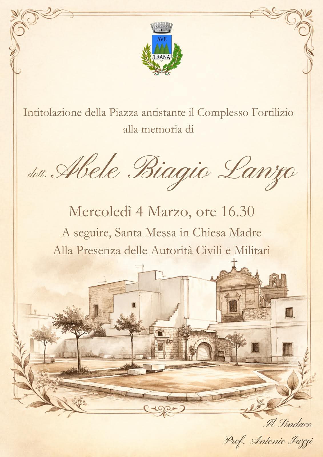 «Il dott. Abele Biagio Lanzo, conosciuto nella nostra comunità e anche al di fuori con l’appellativo “Don Abele”, si è distinto nel suo percorso di vita per la grande competenza medica e per l’umanità con cui si è occupato dei suoi concittadini, portando il conforto della cura e il lume della speranza in tutti i focolari domestici in cui vi era bisogno» scrive sui social il sindaco Antonio Iazzi.