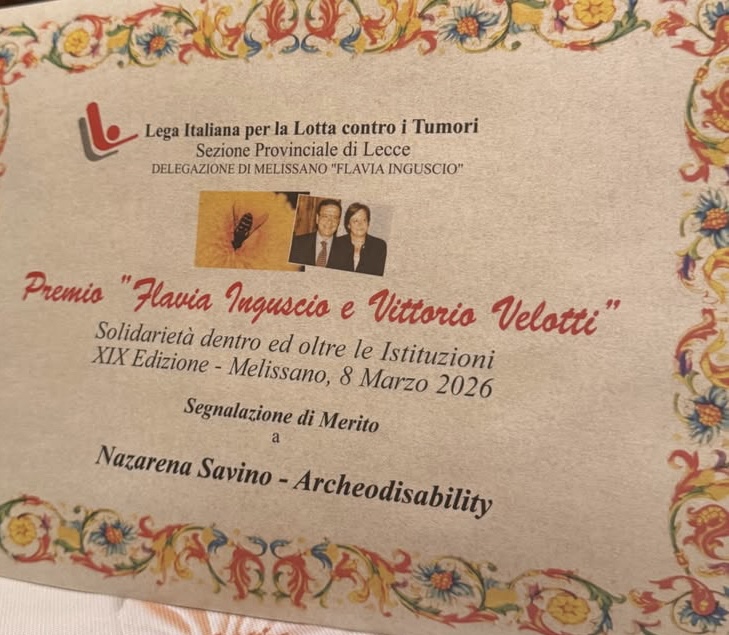 Fondamentale in questo cammino è il progetto “Archeodisability”, fondato insieme a Swami Savino: un’iniziativa che nasce dall’incontro tra esperienza personale, studio e volontà di costruire un ponte tra cultura e diritti. L’obiettivo è chiaro: promuovere l’idea che la disabilità non sia un limite, ma una risorsa per la società.